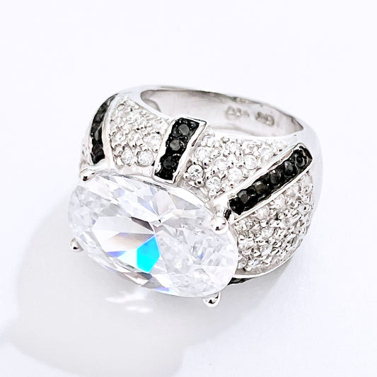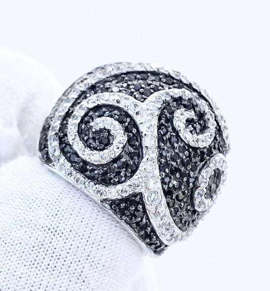 Pavé Black and Colorless "Diamond" Swirl Dome Ring