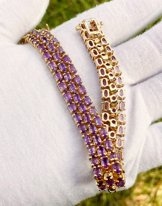 Gold Plated Tri-Row Amethyst Tennis Bracelet
