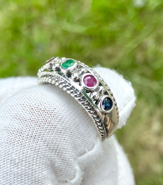 Round Cut Sapphire, Emerald, and Ruby Ring