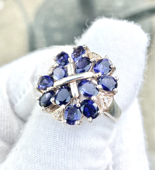 Oval Cut Iolite Cluster Ring with Diamond Accents
