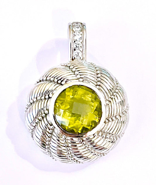 Judith Ripka Round Checkerboard Cut Olive Quartz Pendant