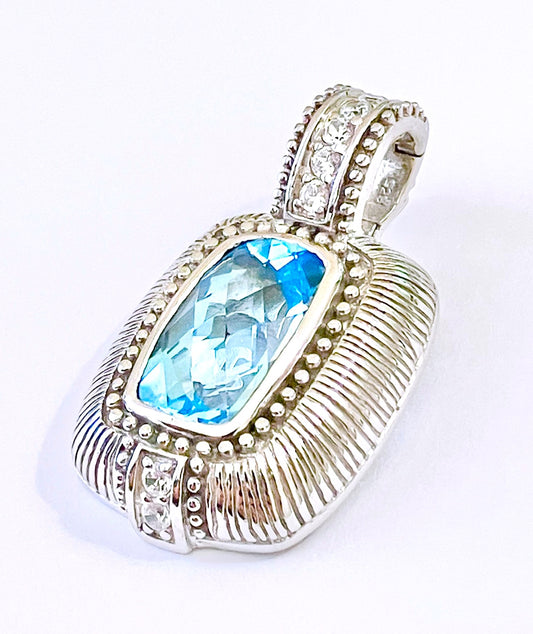 Judith Ripka Elongated Checkerboard Cushion Cut Gemstone and “Diamond” Pendant (3 Colors!)