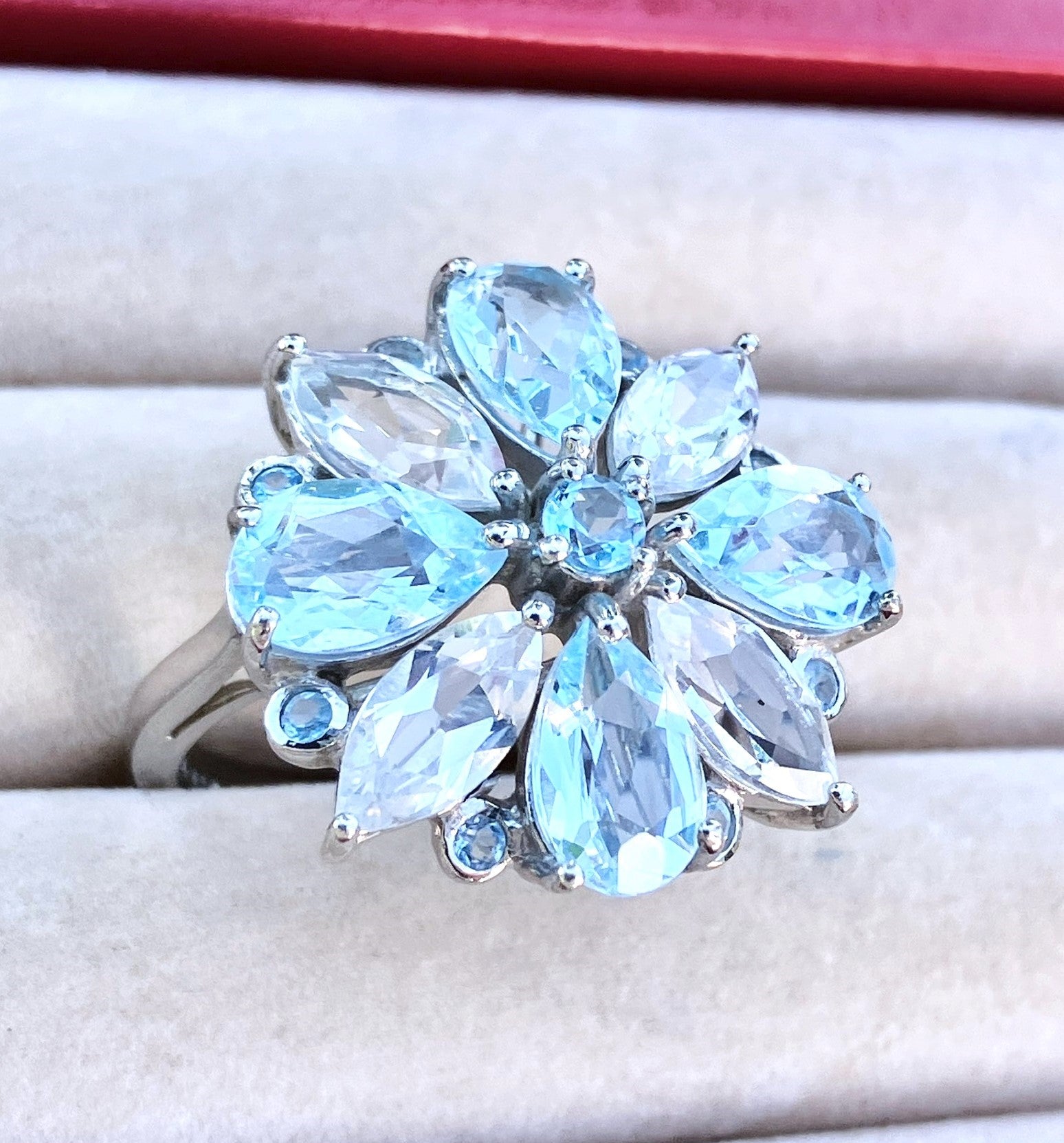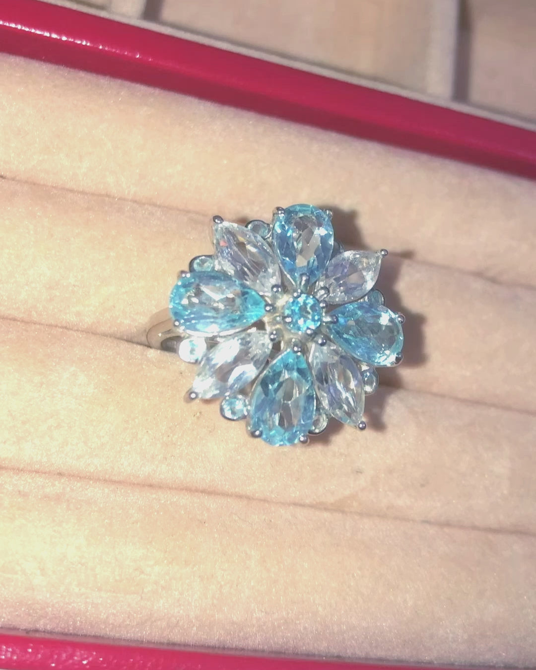 Anillo de topacio azul cielo y hielo glaciar de talla pera y marquesa con detalles de topacio azul cielo
