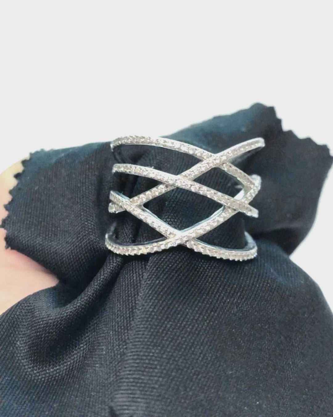 Anillo de "diamante" entrecruzado con conjunto de canales