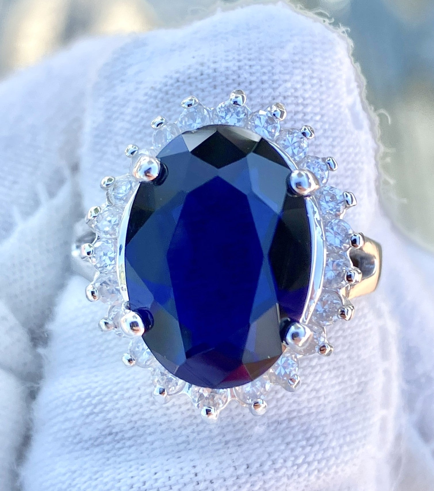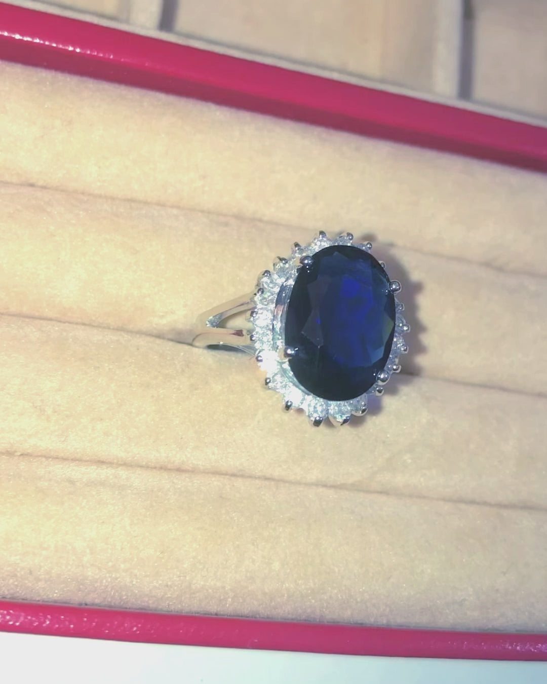 Anillo "Zafiro" de corte ovalado en "Diamante" con halo (¡2 tamaños!)