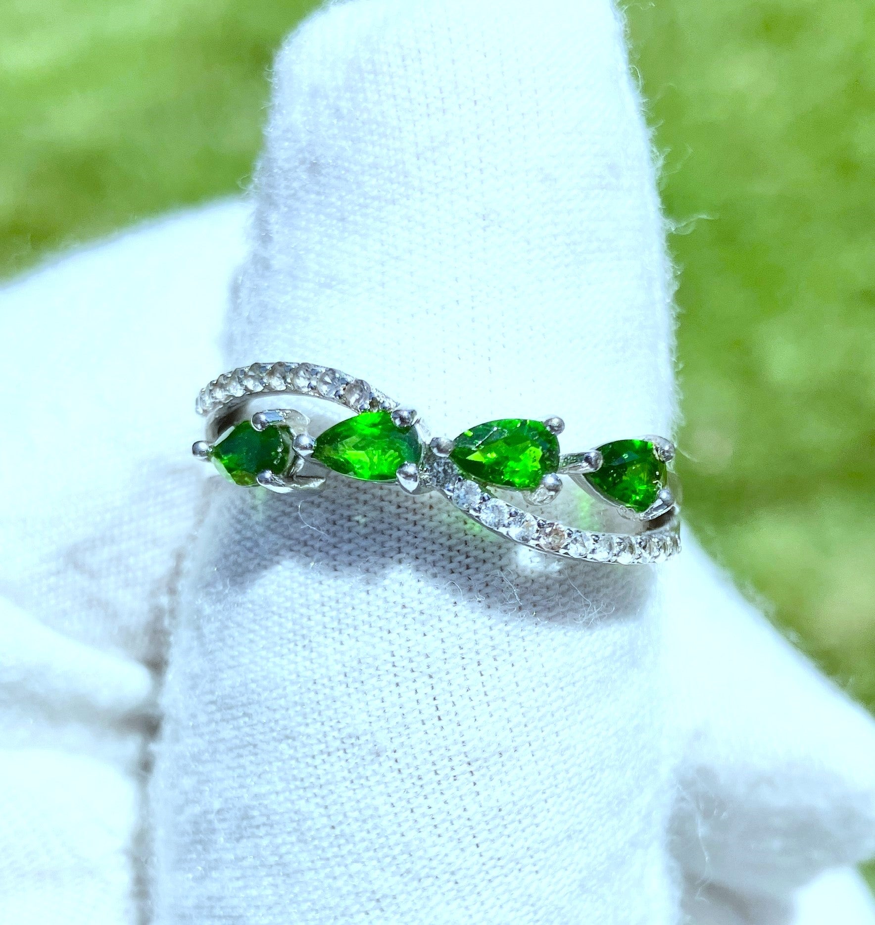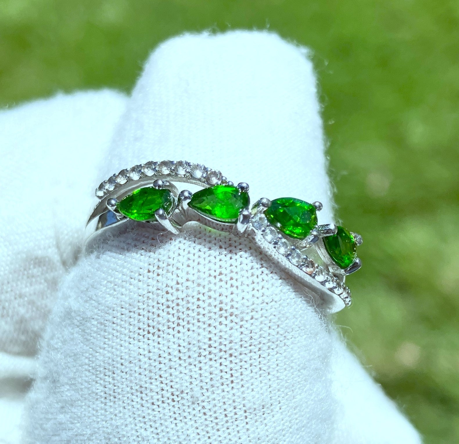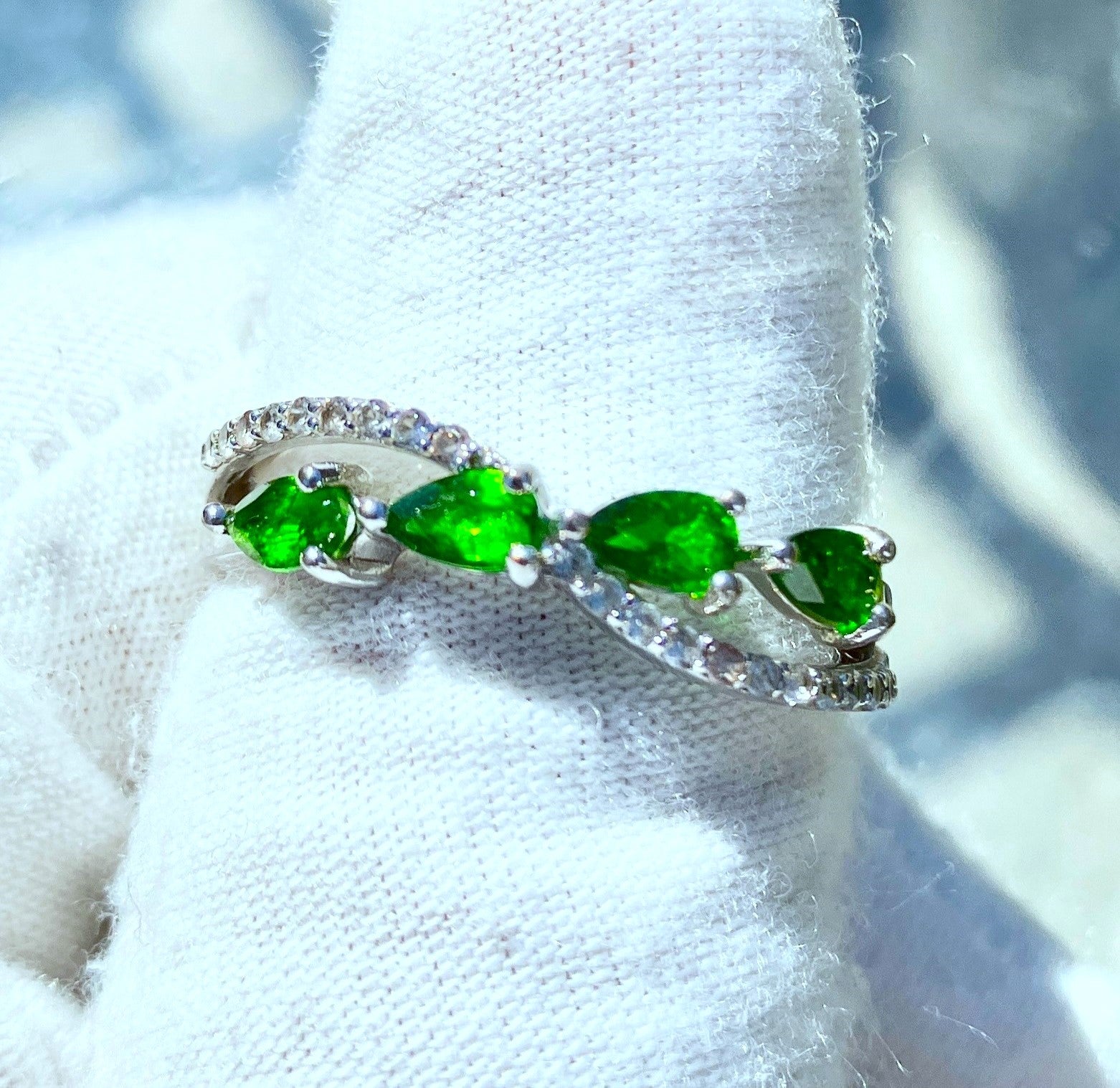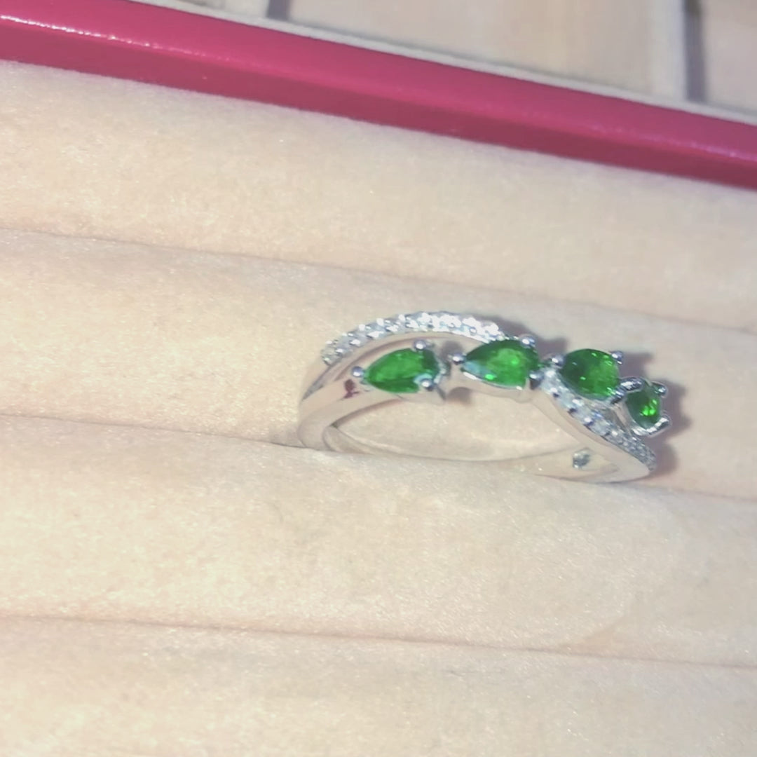 - Circón verde de corte de pera junto con "Diamantes" en un vástago medio torcido