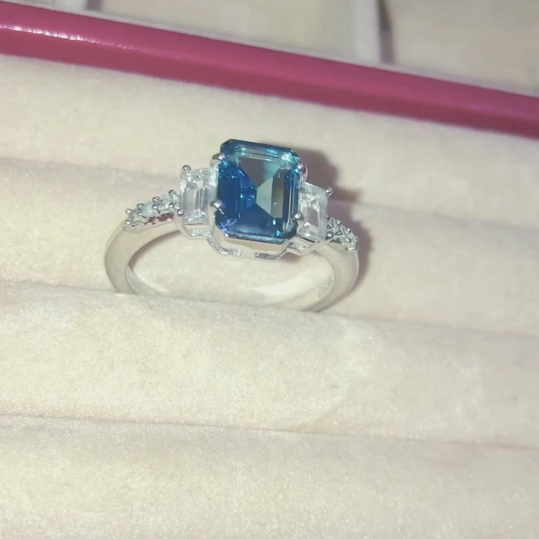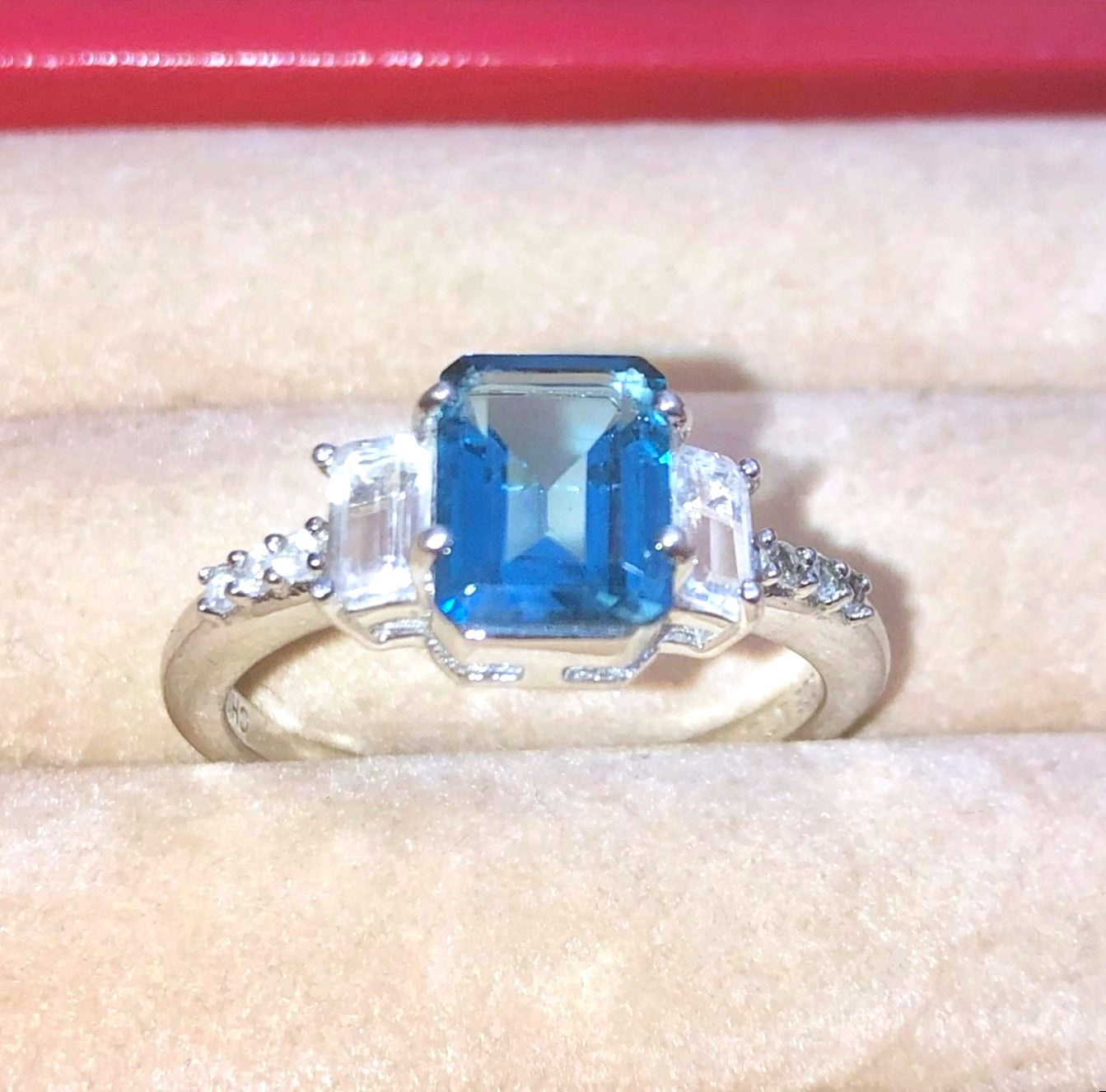 Anillo de topacio blanco y azul Londres de talla esmeralda con detalles de "diamante"