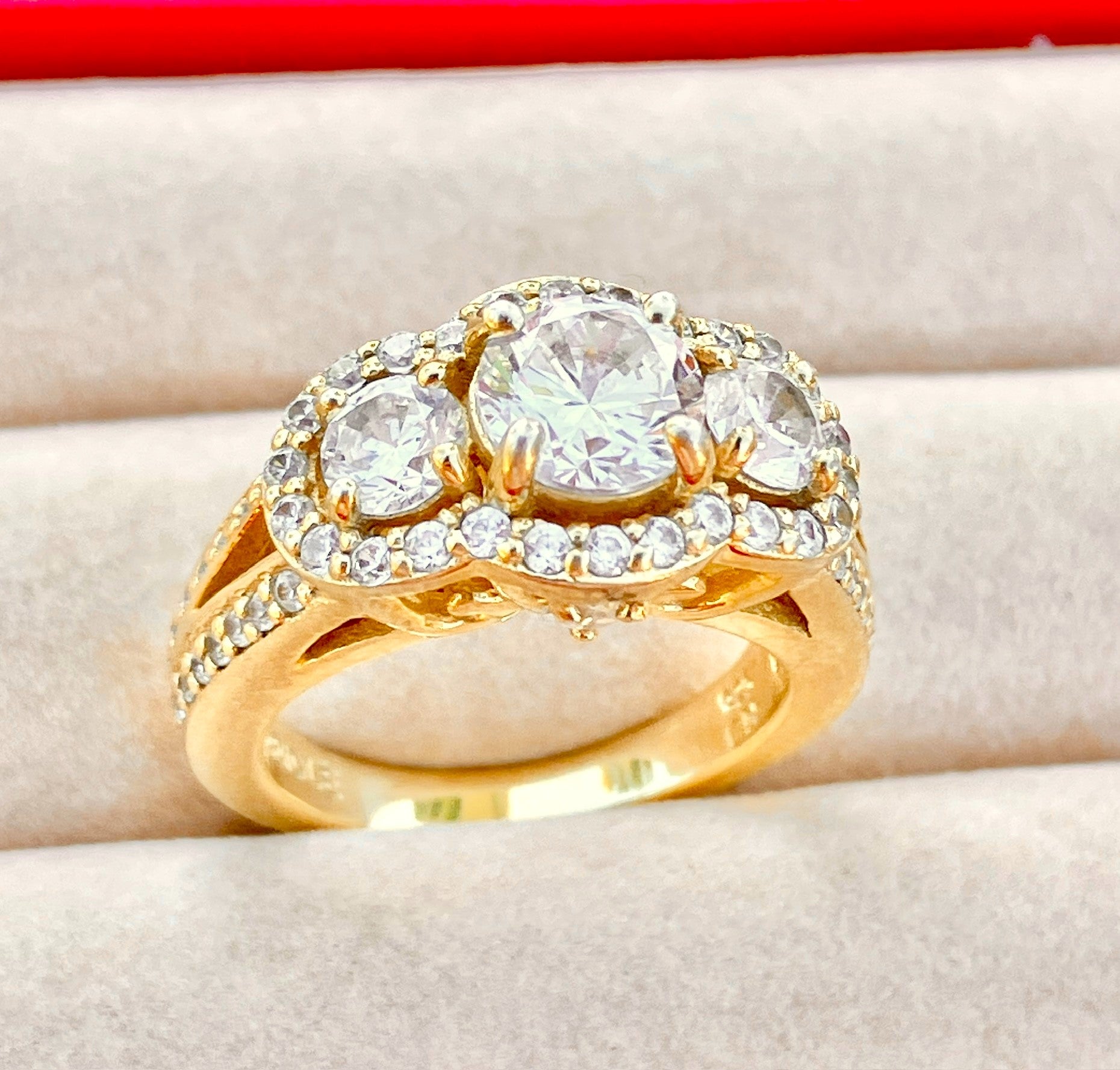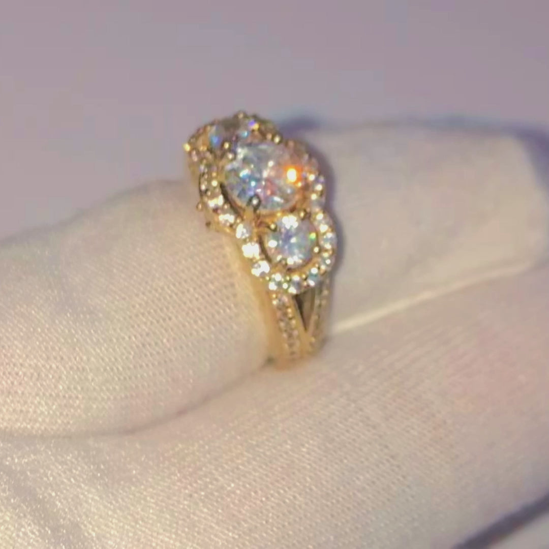 Anillo de vástago dividido "Diamante" de 3 piedras chapado en oro
