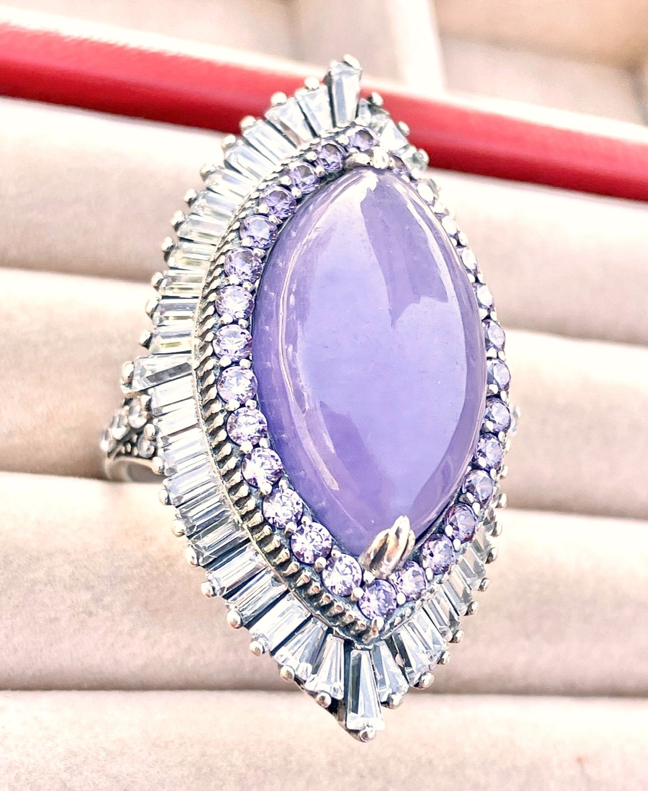 Jade Lavanda en Anillo de Halos “Amatista” y “Diamante”