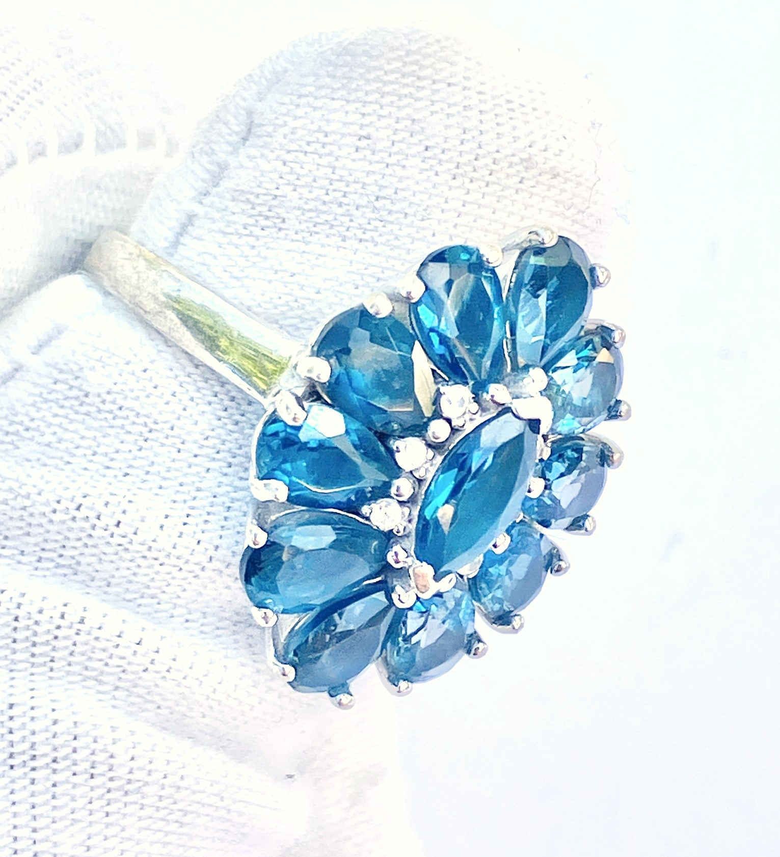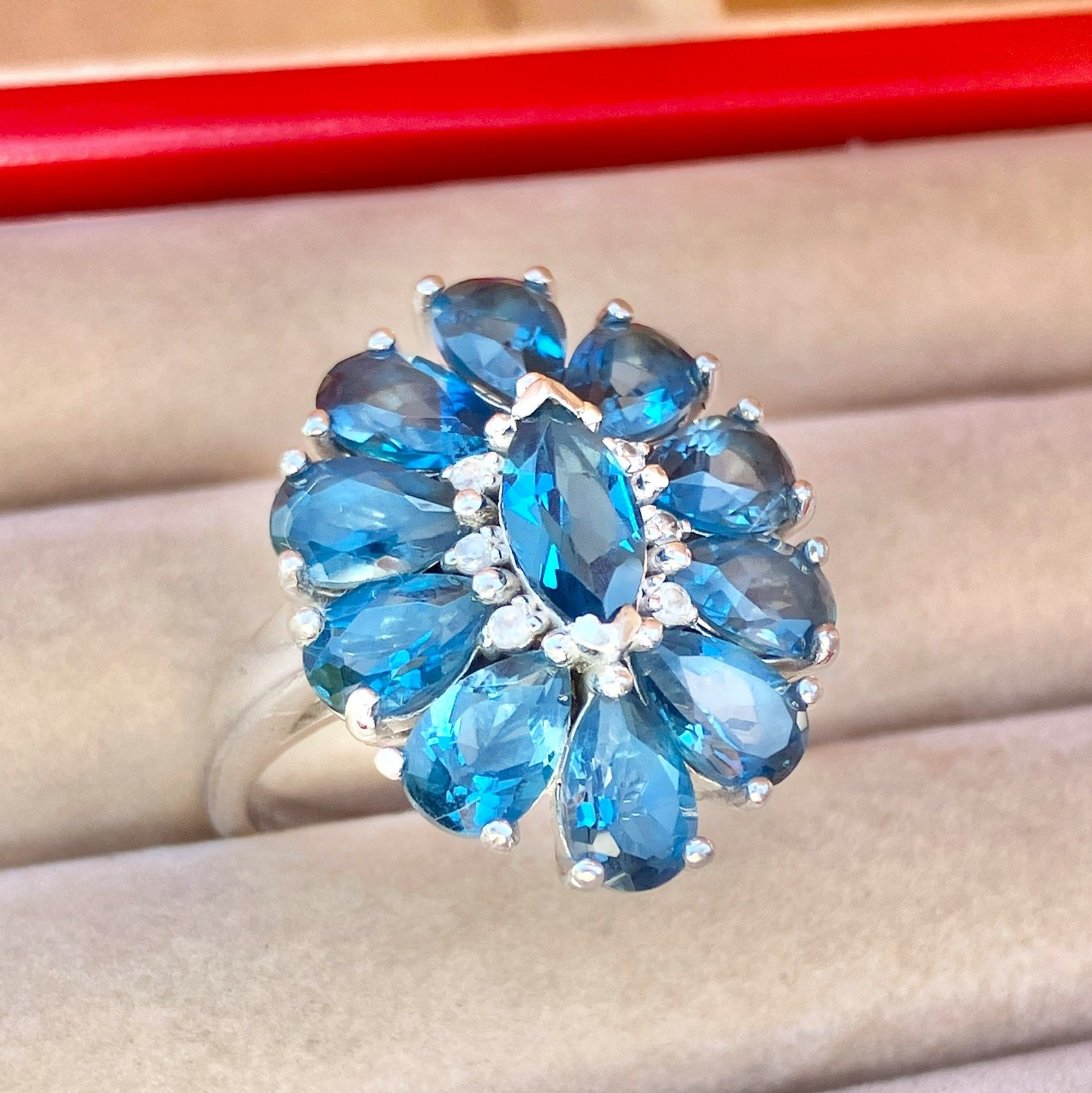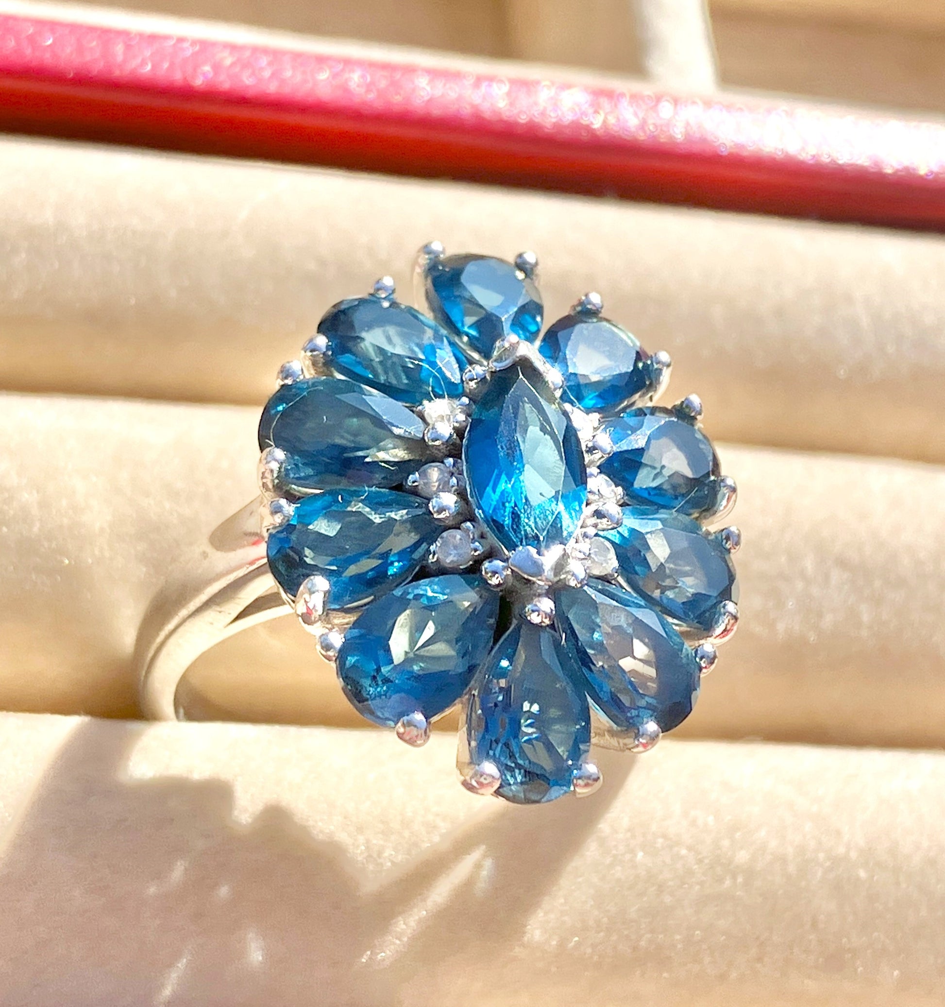 Marquise and Pear Cut London Blue Topaz Ring with “Diamond” Accents