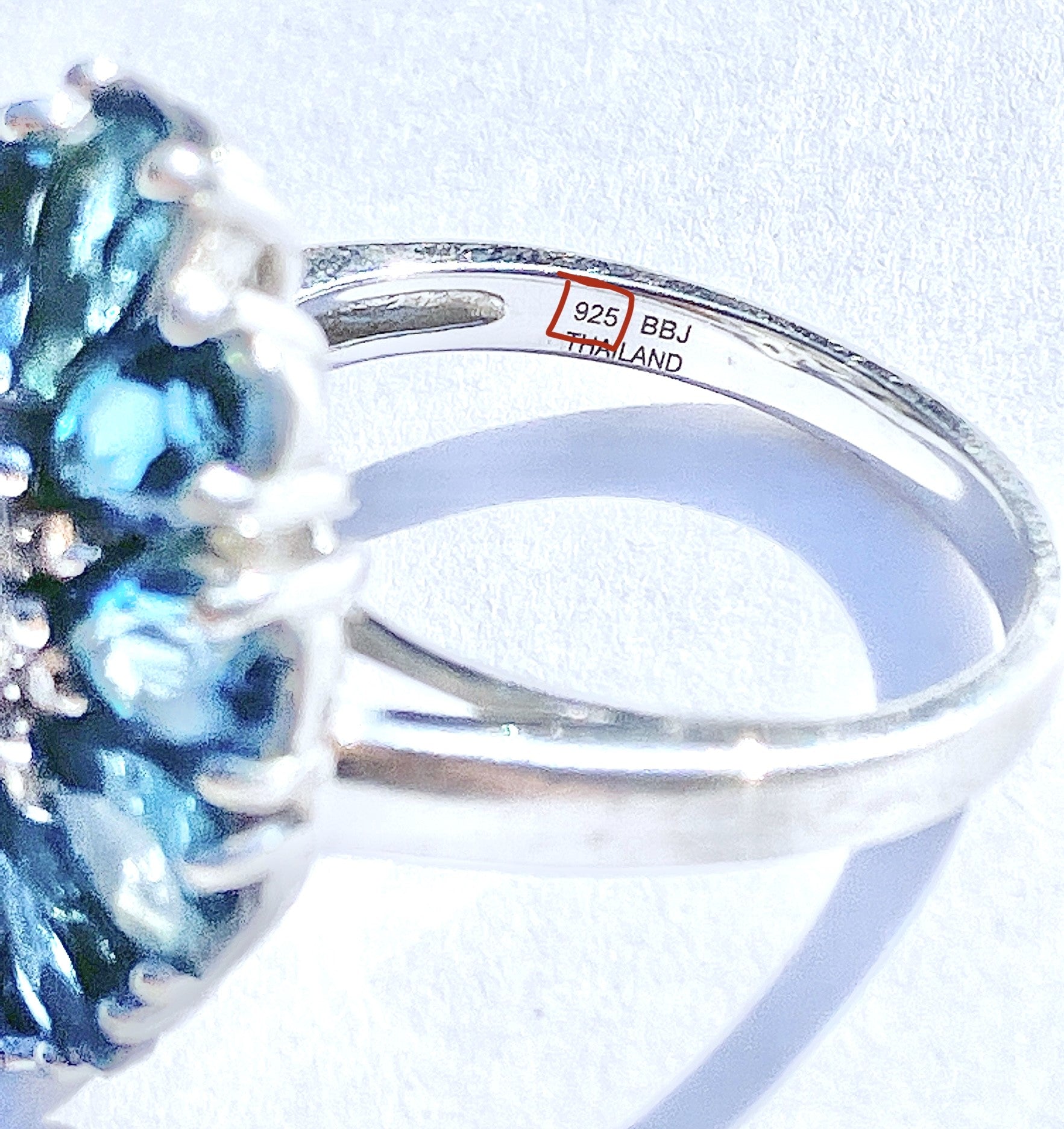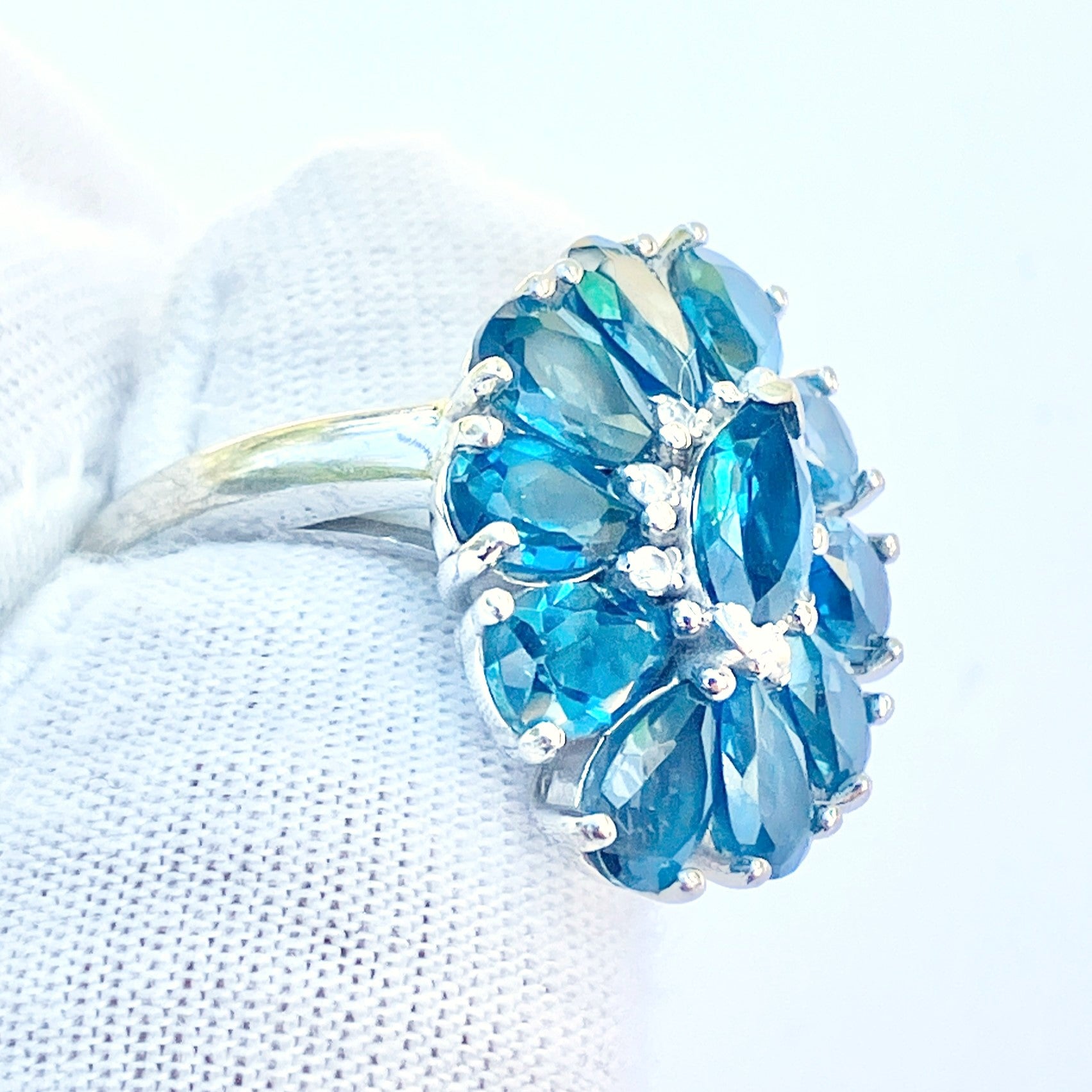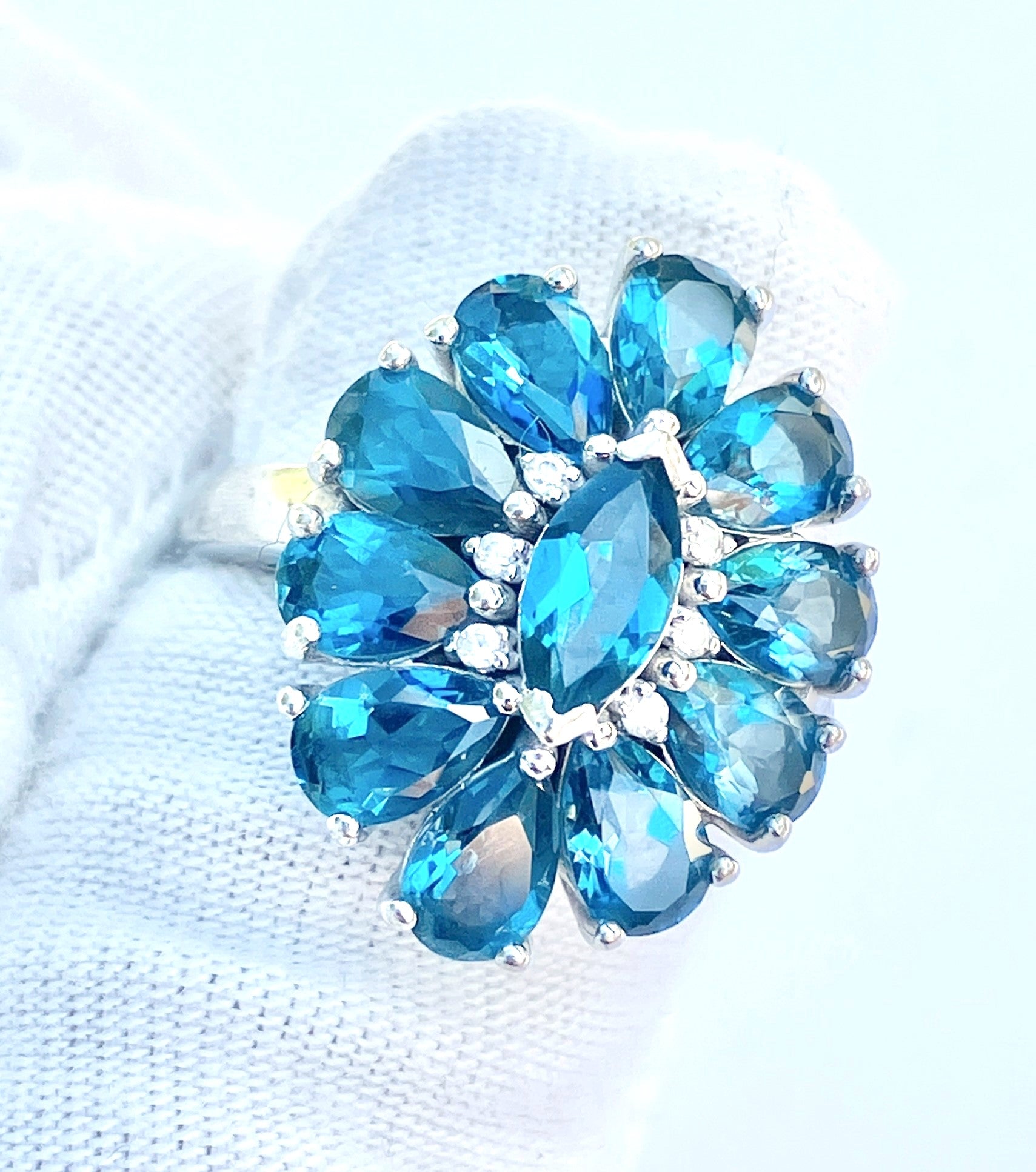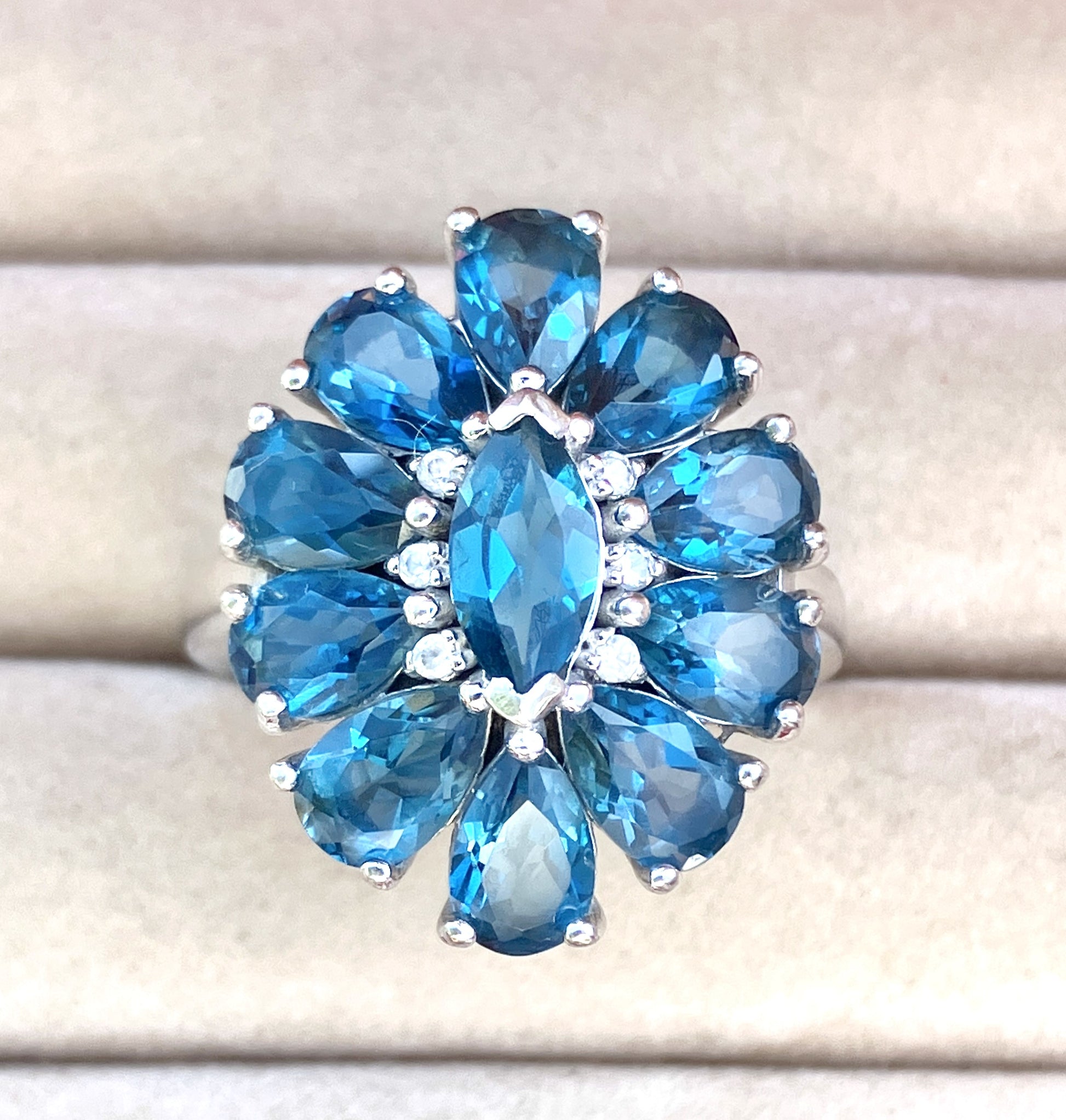 Marquise and Pear Cut London Blue Topaz Ring with “Diamond” Accents