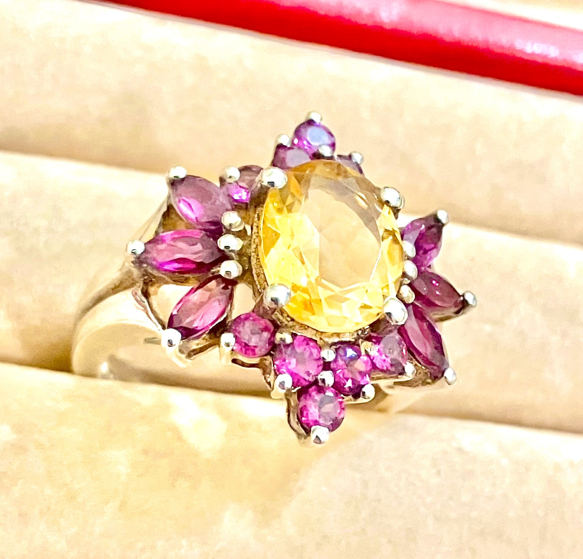 - piedra central de citrino de talla ovalada ; 10x8 mm, ~2,4 quilates