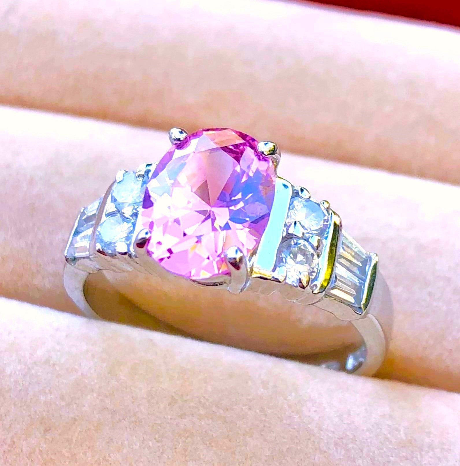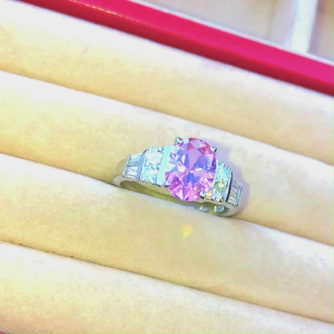 Juego de barra "Diamante" rosa redondo y anillo con detalles "Diamante" de talla baguette