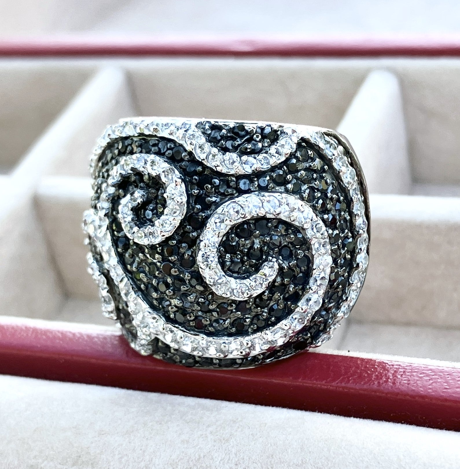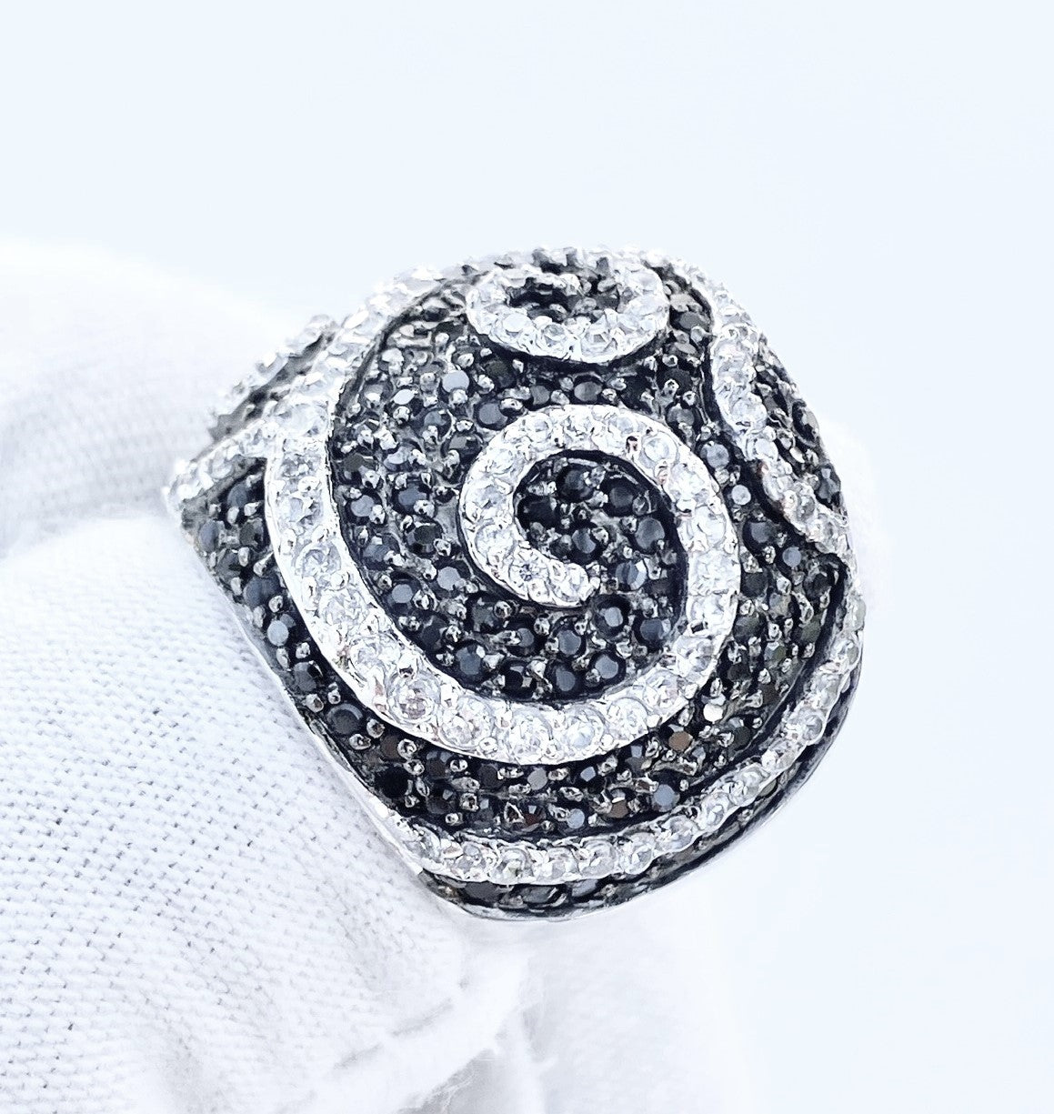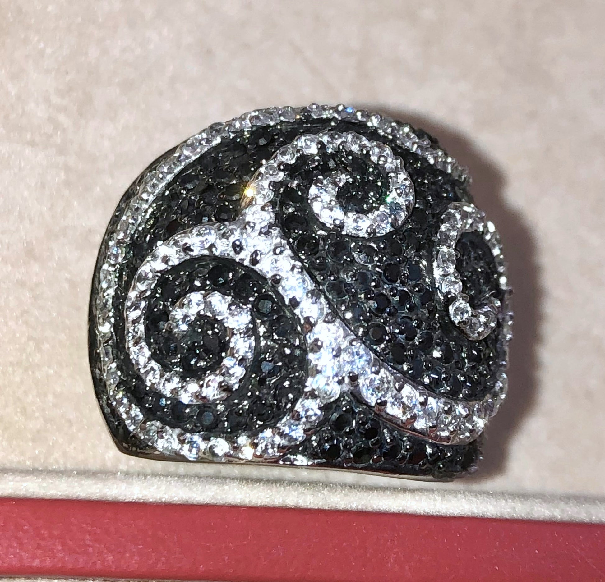 Pavé Black and Colorless "Diamond" Swirl Dome Ring
