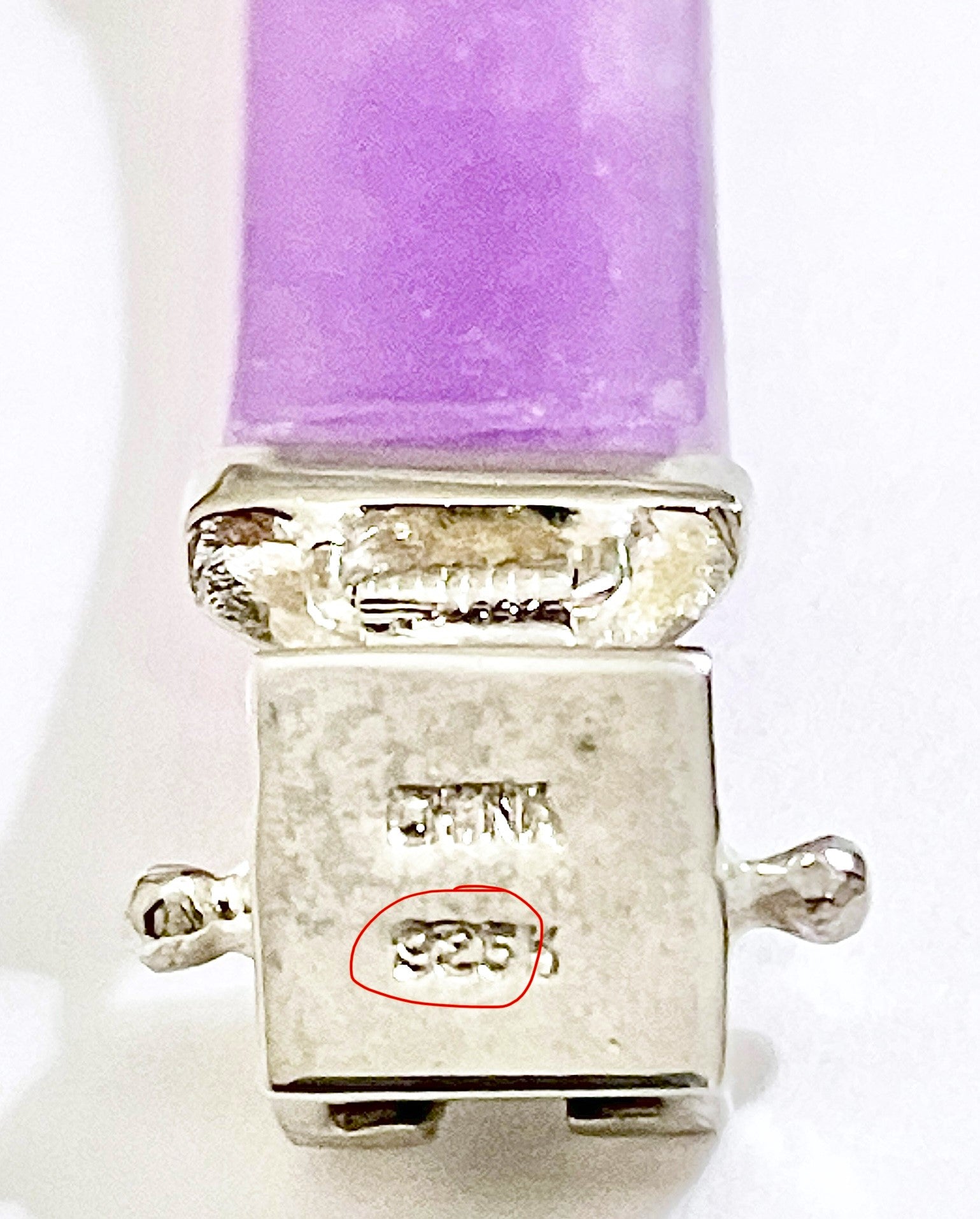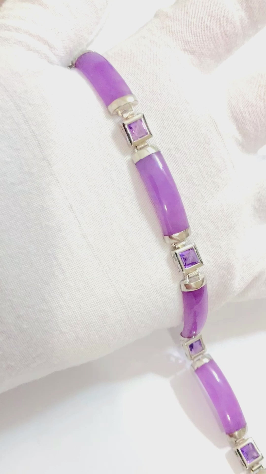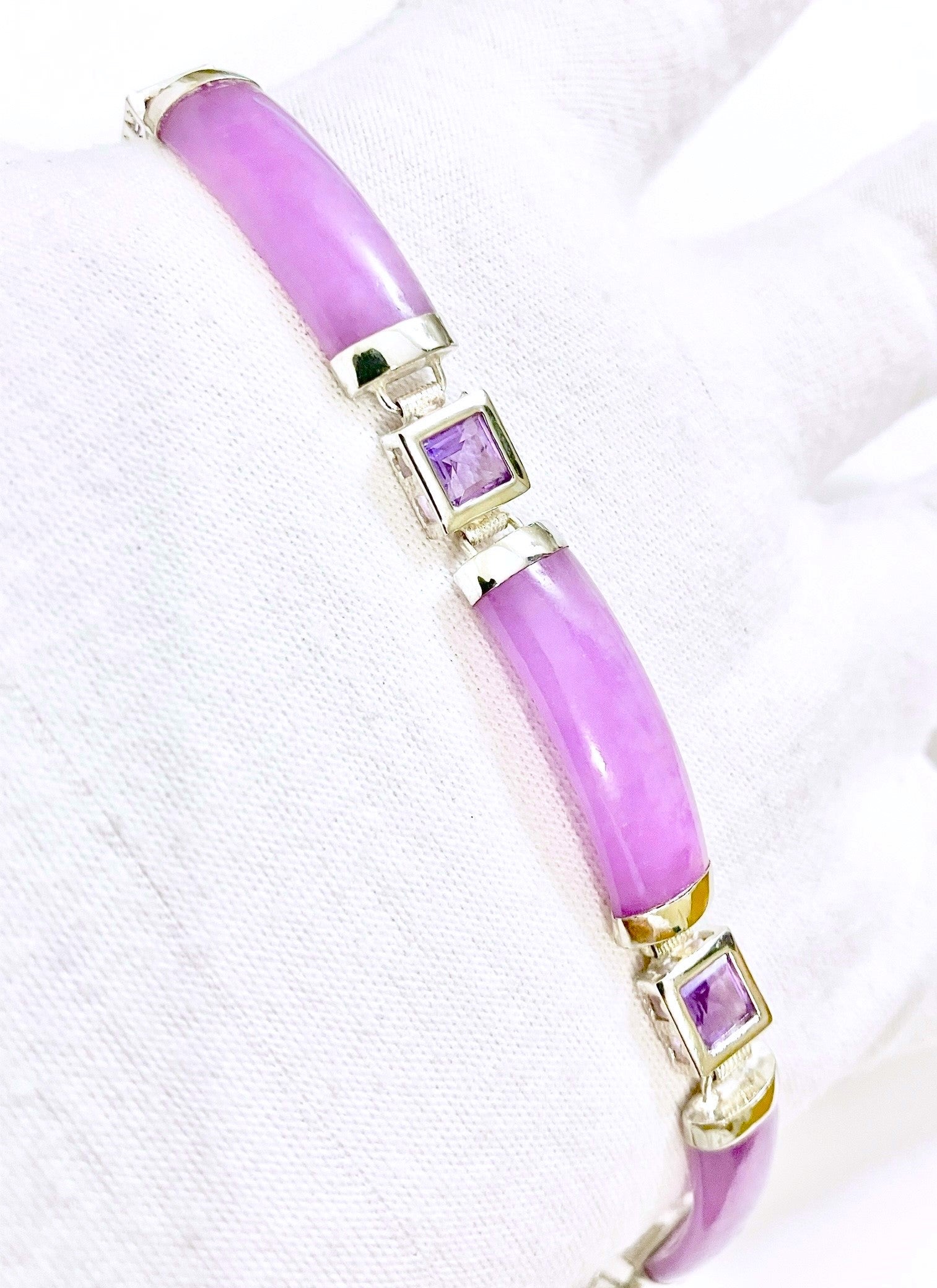 Chinese Lavender Jade Bracelet with Square Step Cut Amethysts
