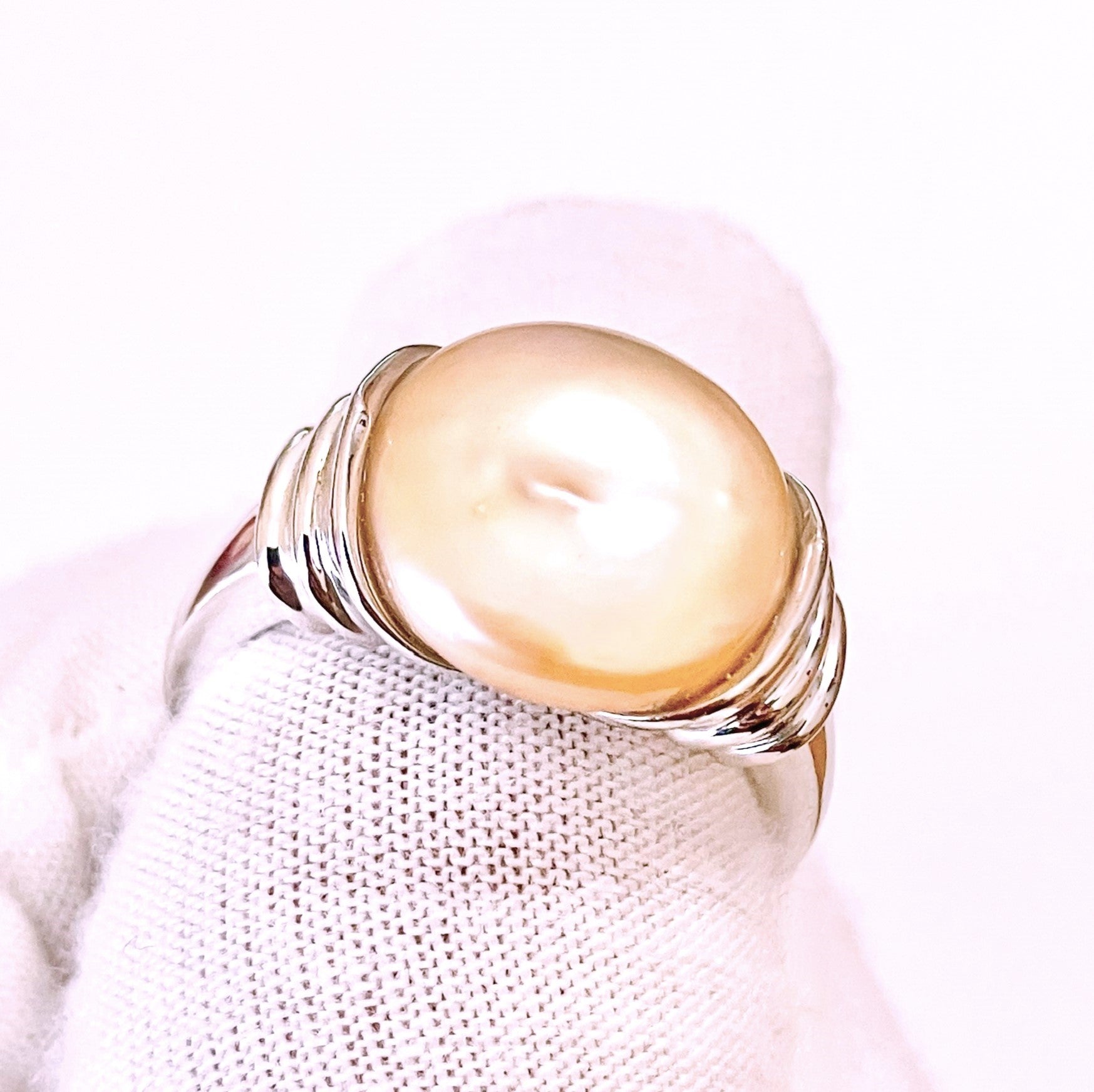 - Tension Set Apricot Colored Pearl Ring - Size 10 (Coin Pearl - 14.5mm)