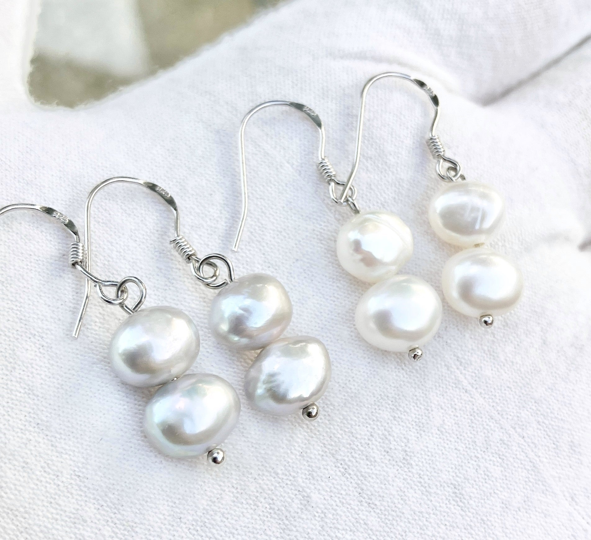 - Silver Semi-Baroque Pearl Earrings - ~9mm pearls - 1.25in long