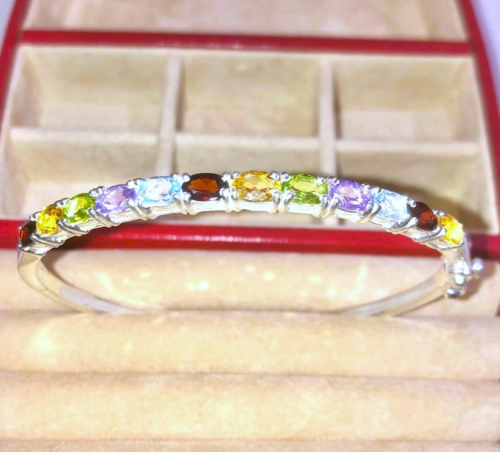 Garnet, Amethyst, Peridot, Blue Topaz, and Yellow Topaz Bangle