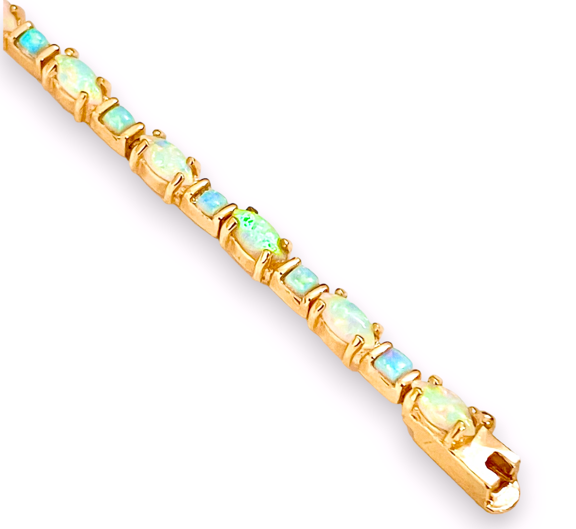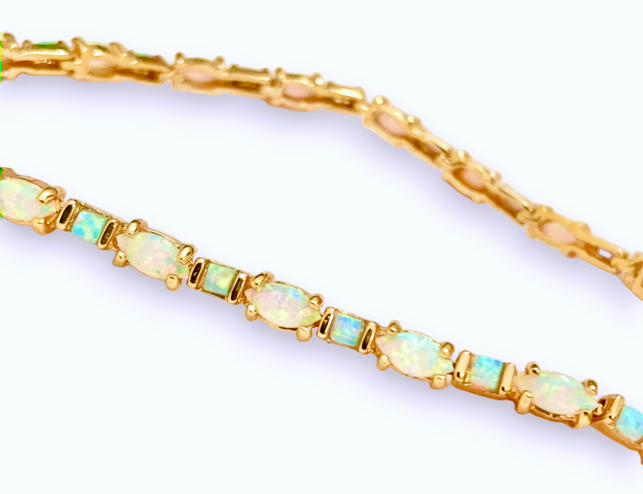 Gold Plated Marquise and Square Synthetic Opal Tennis Bracelet