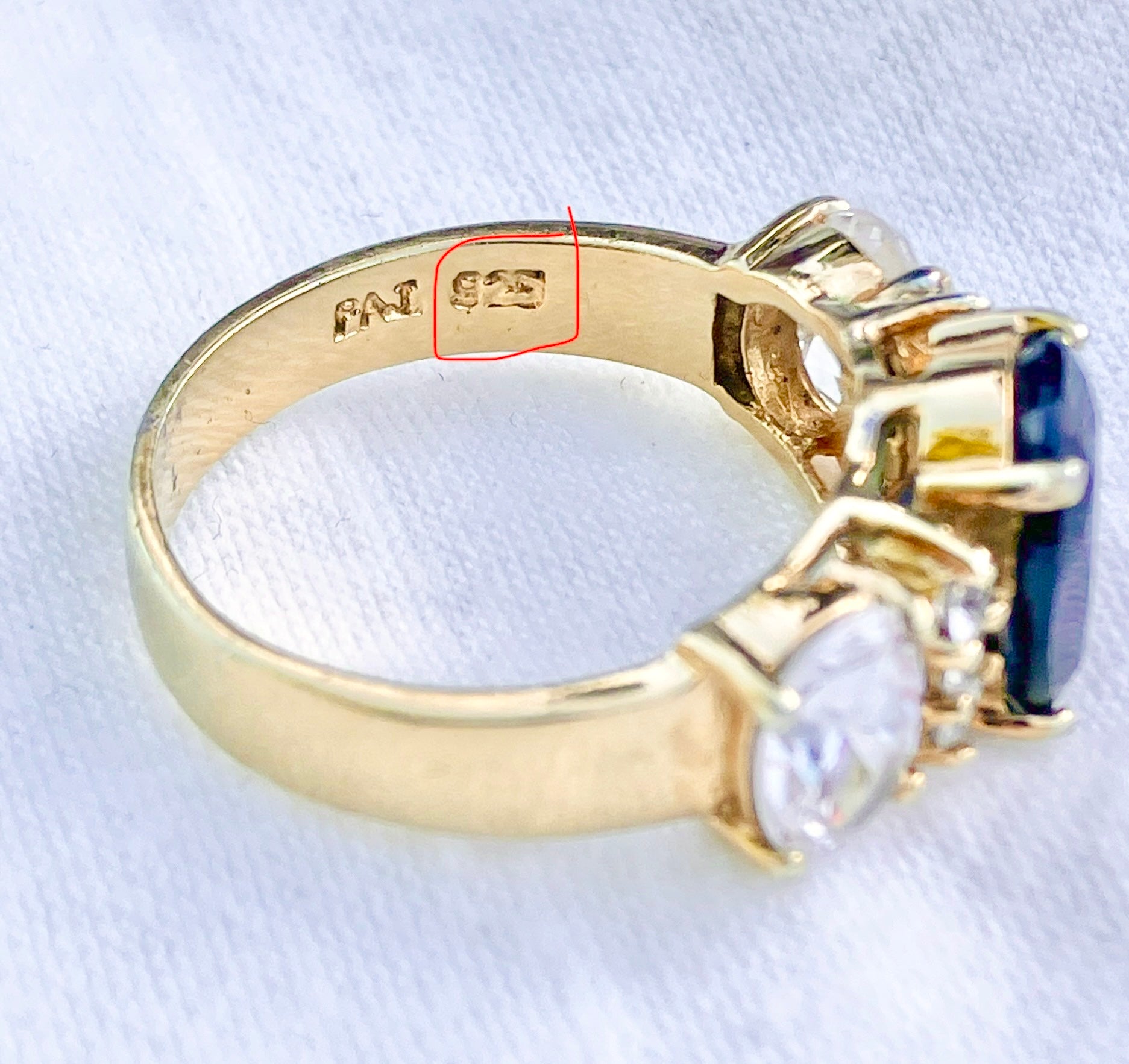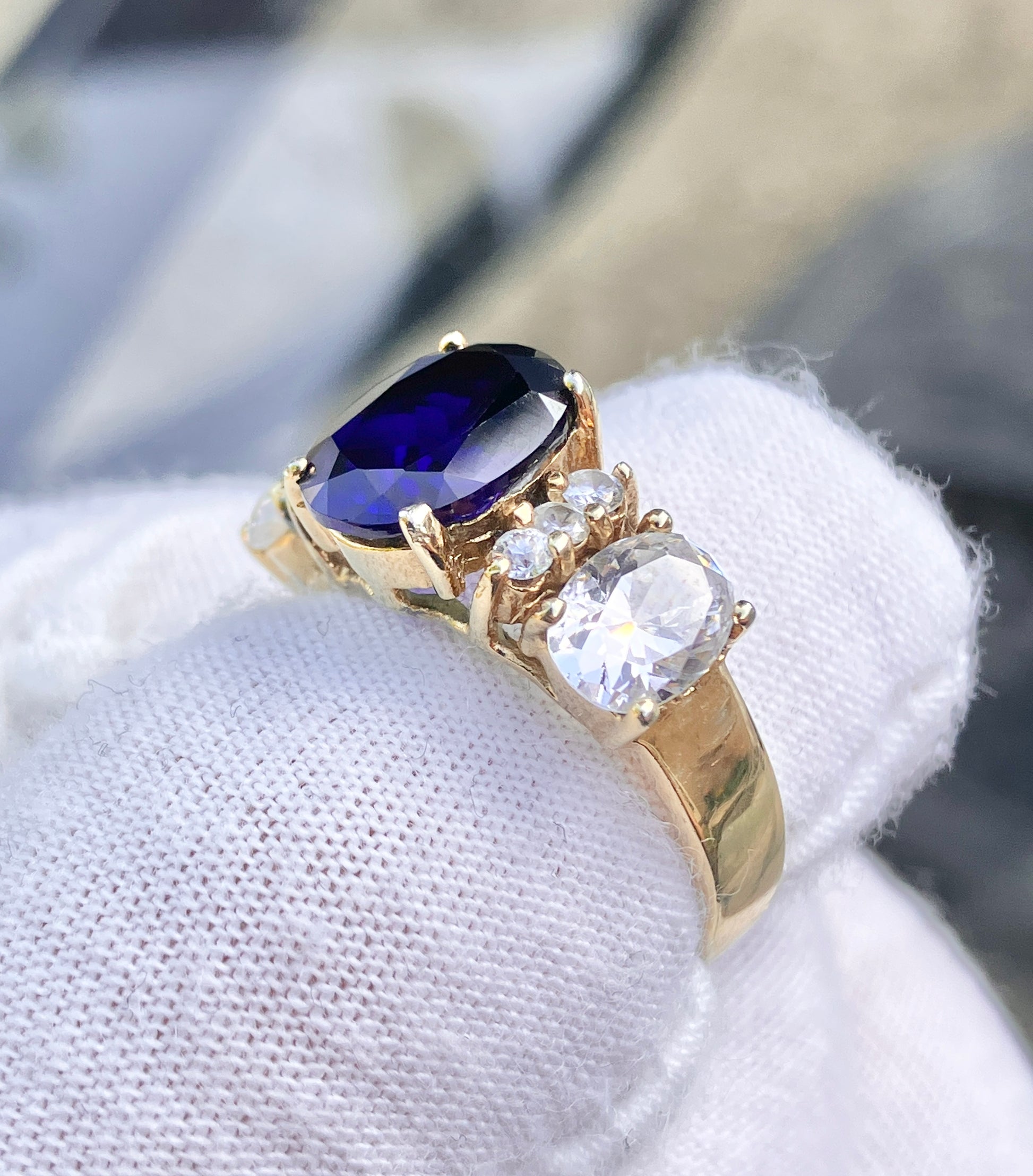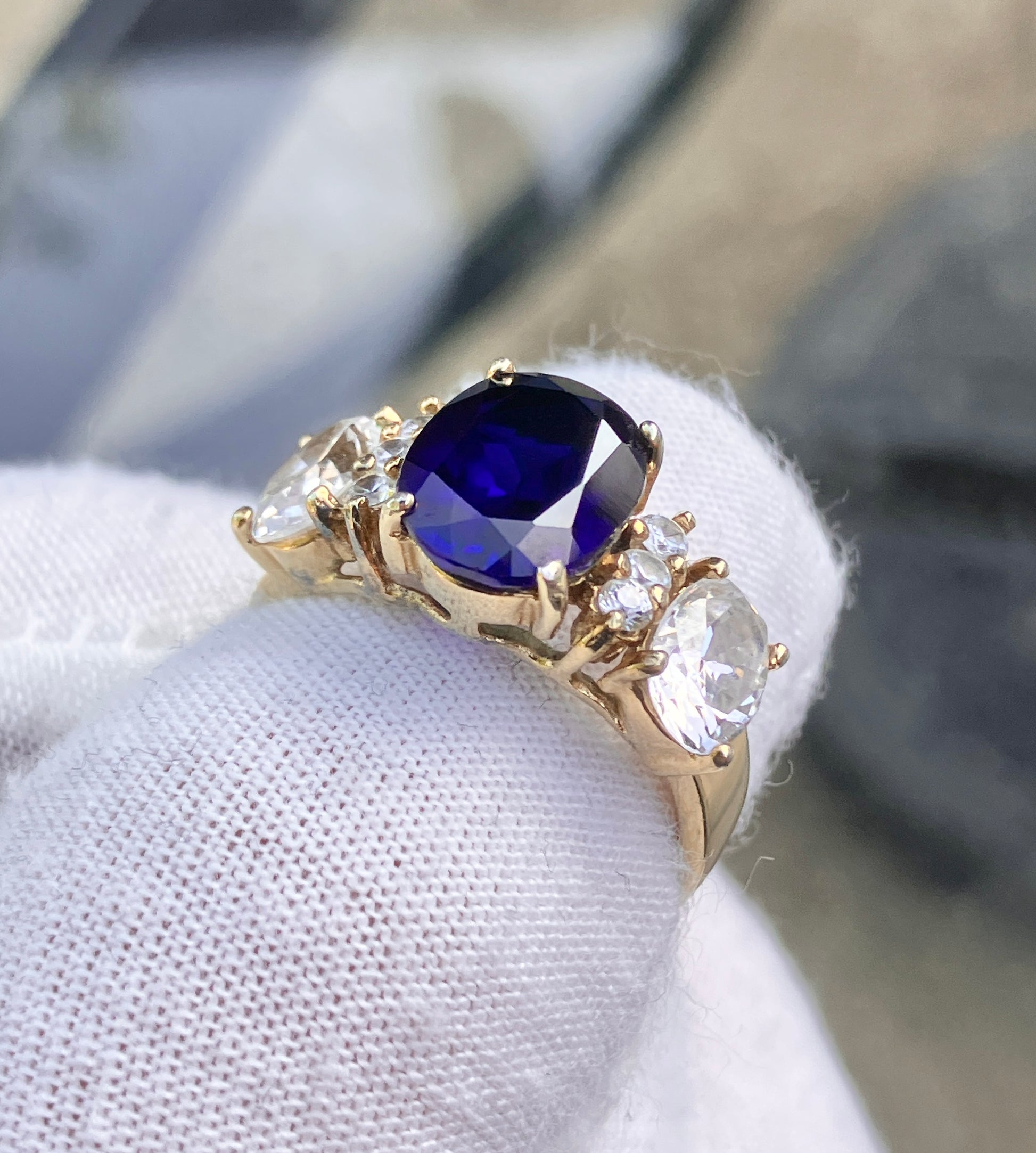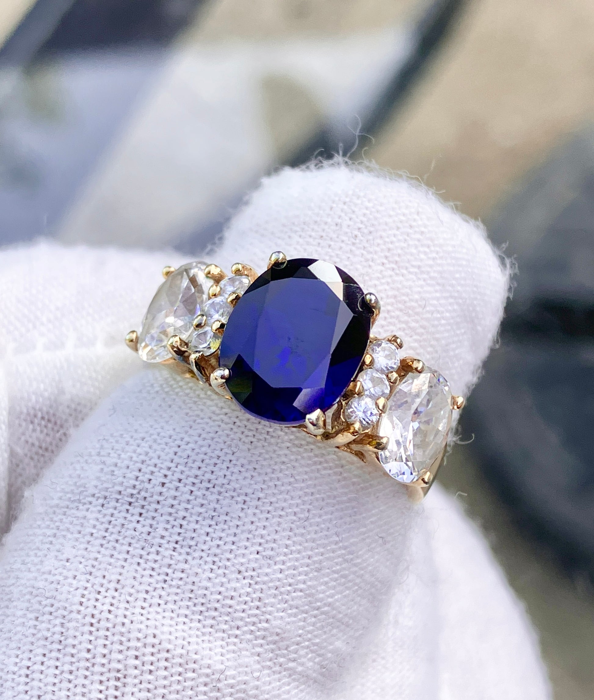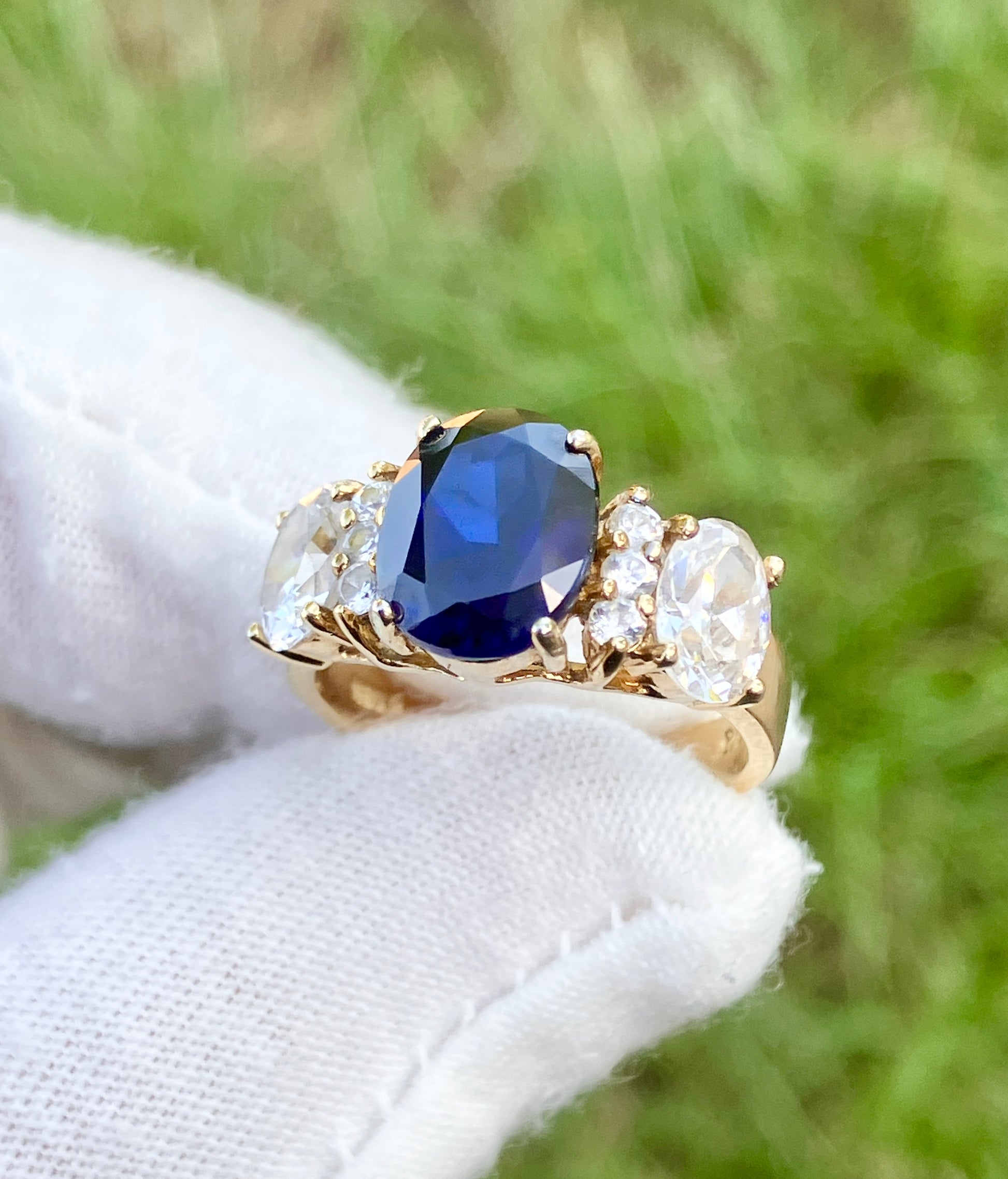 Gold Plated Oval Cut Synthetic Sapphire with “Diamond” Accents Ring