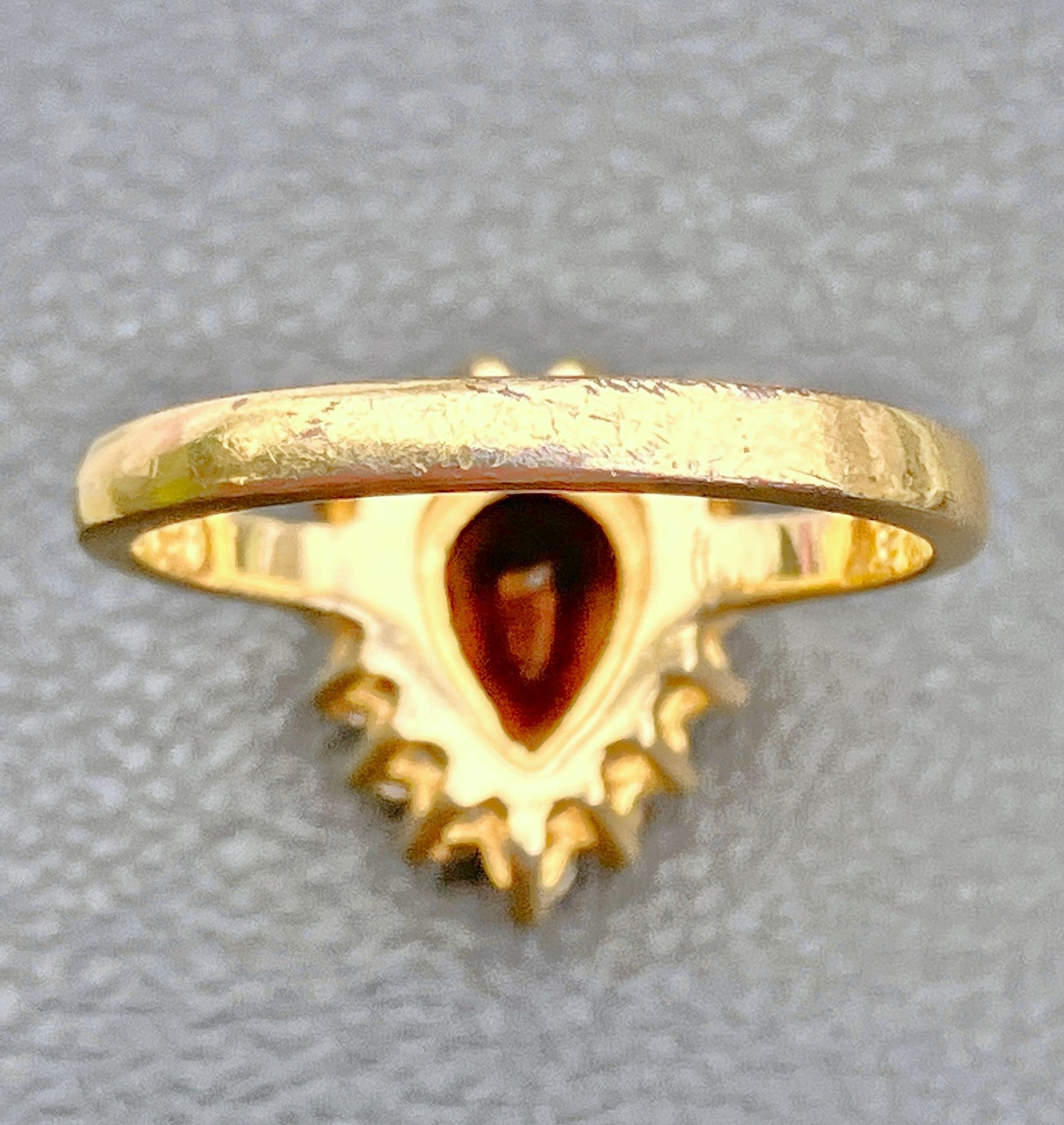 Gold Plated Pear Cut Garnet in "Diamond" Halo Ring