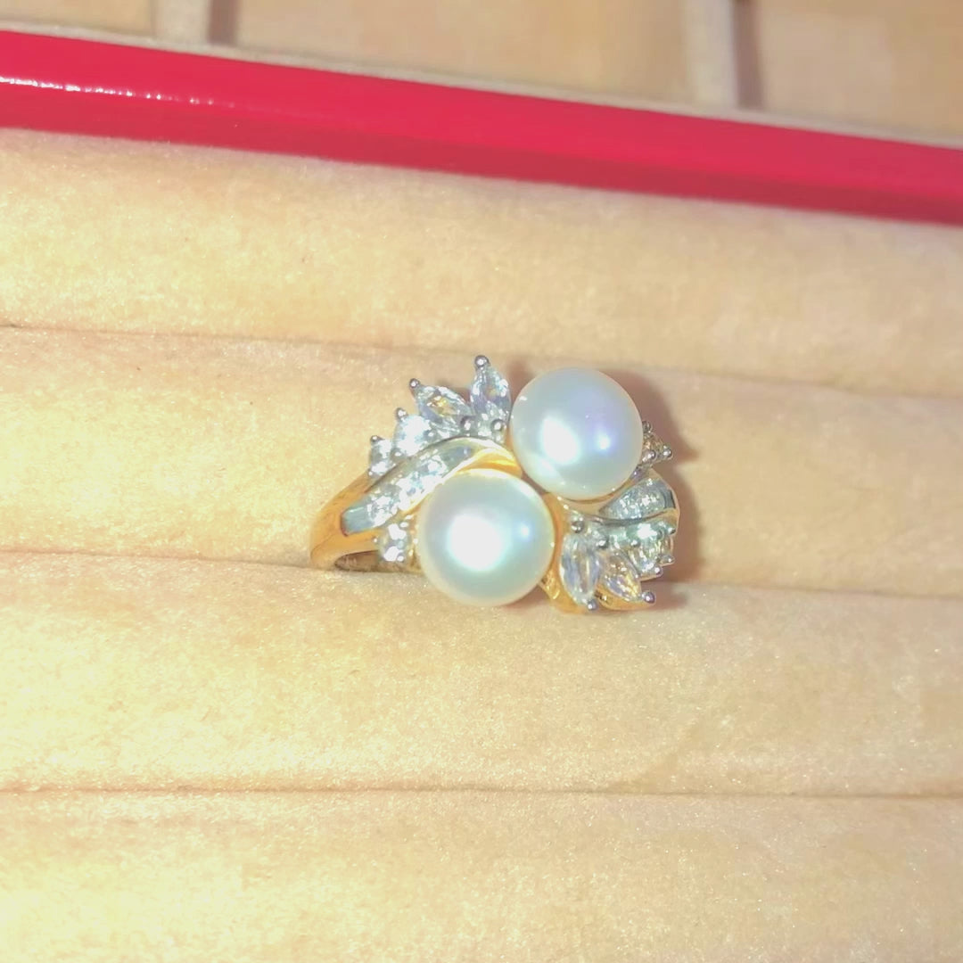 Gold Plated Pearl and Colorless Lab Sapphire Ring