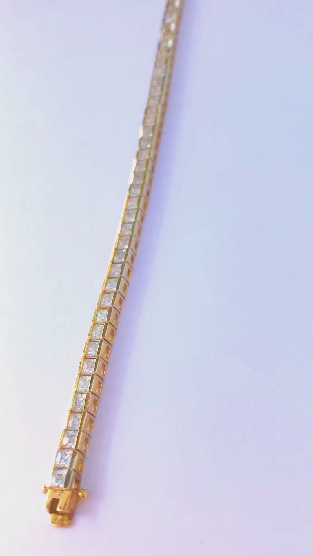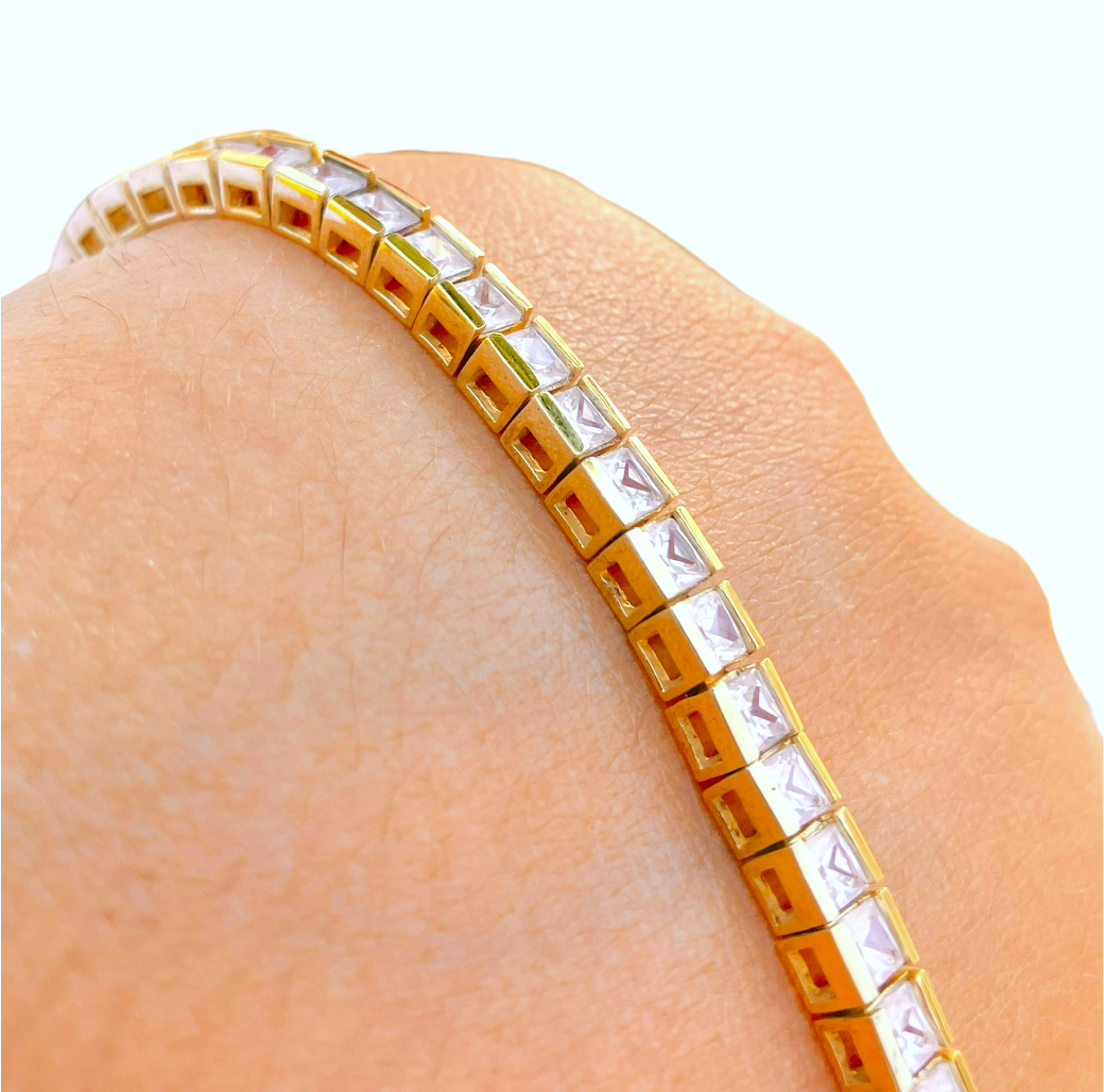 Gold Plated Princess Cut "Diamond" Tennis Bracelet