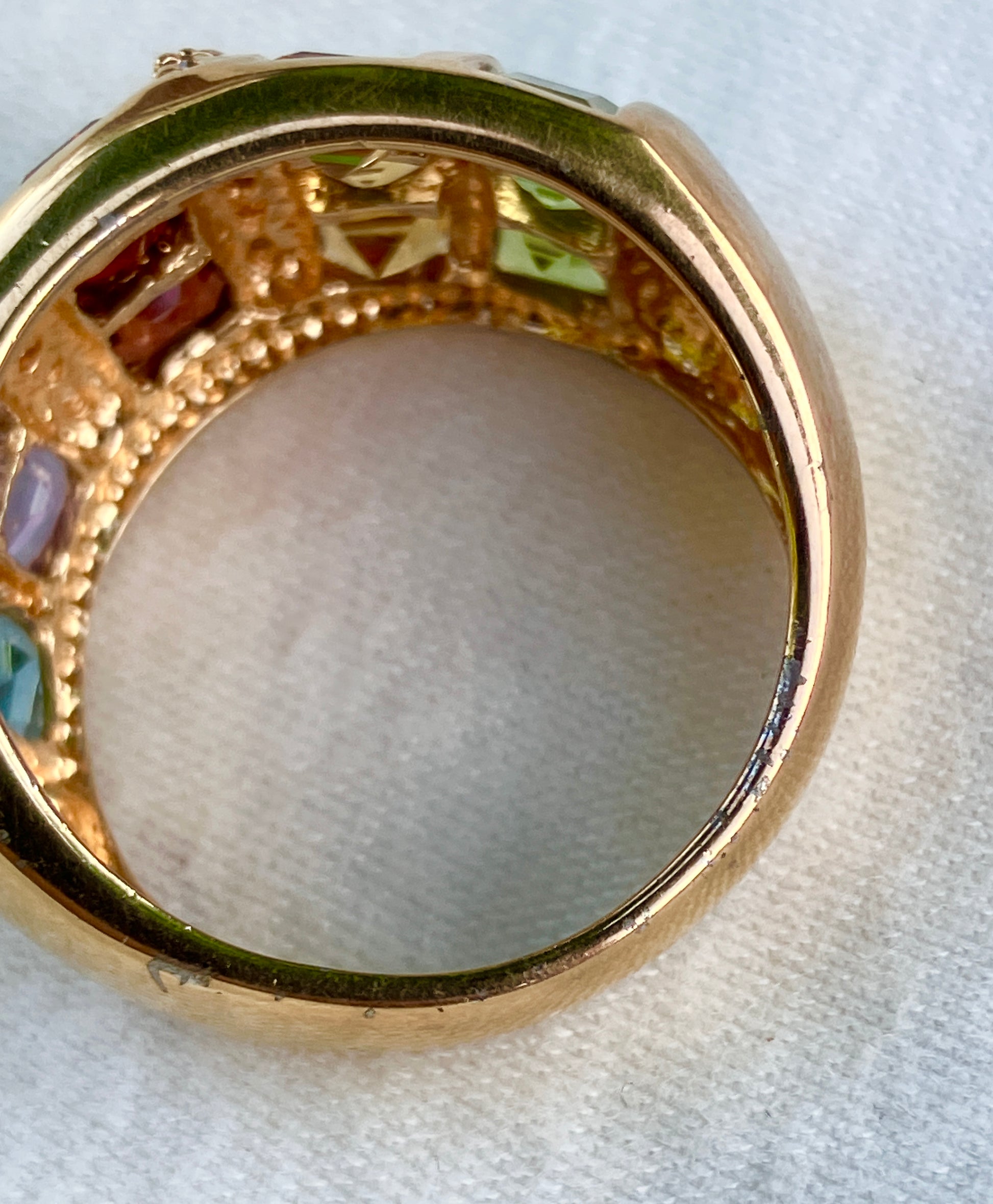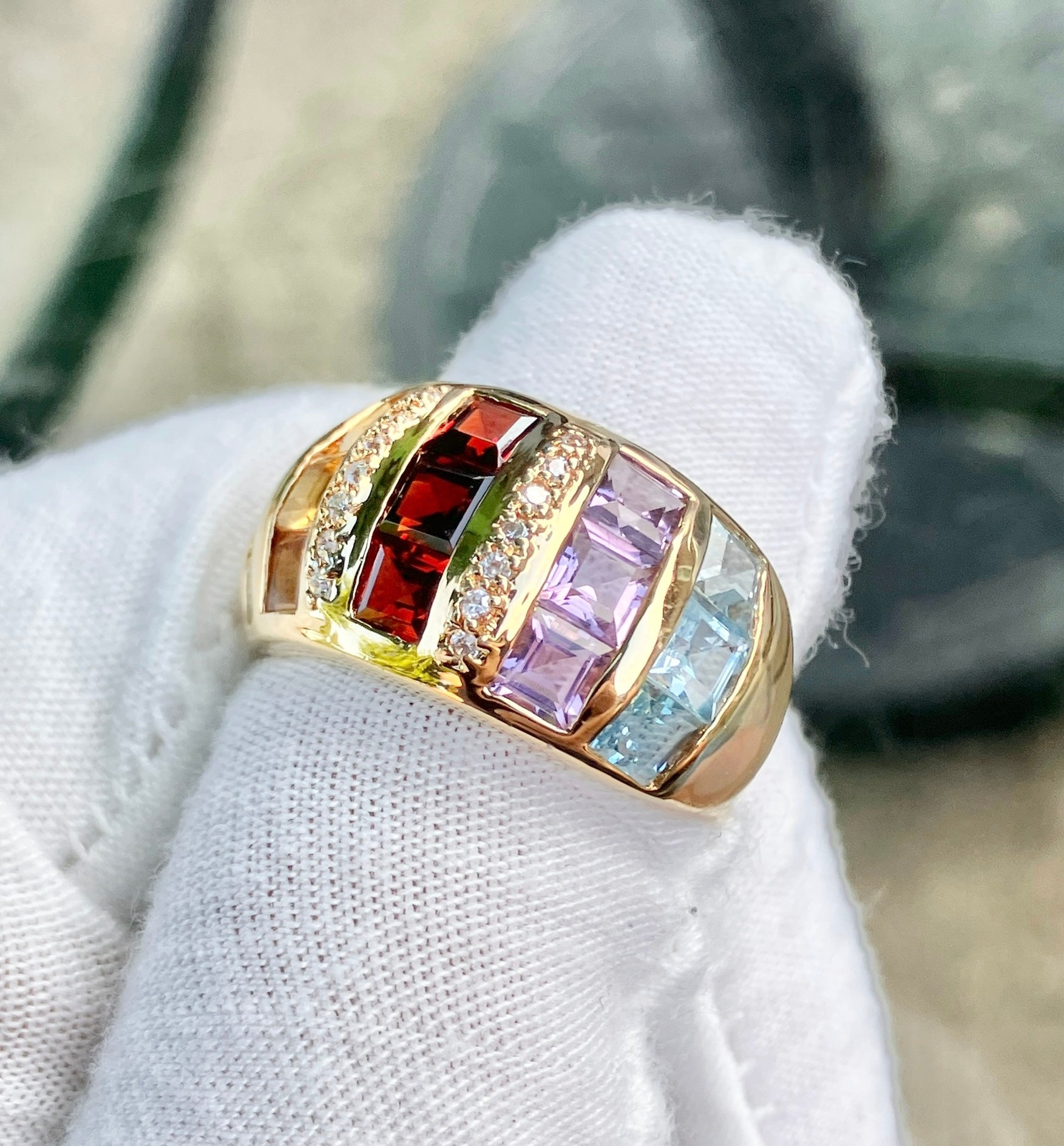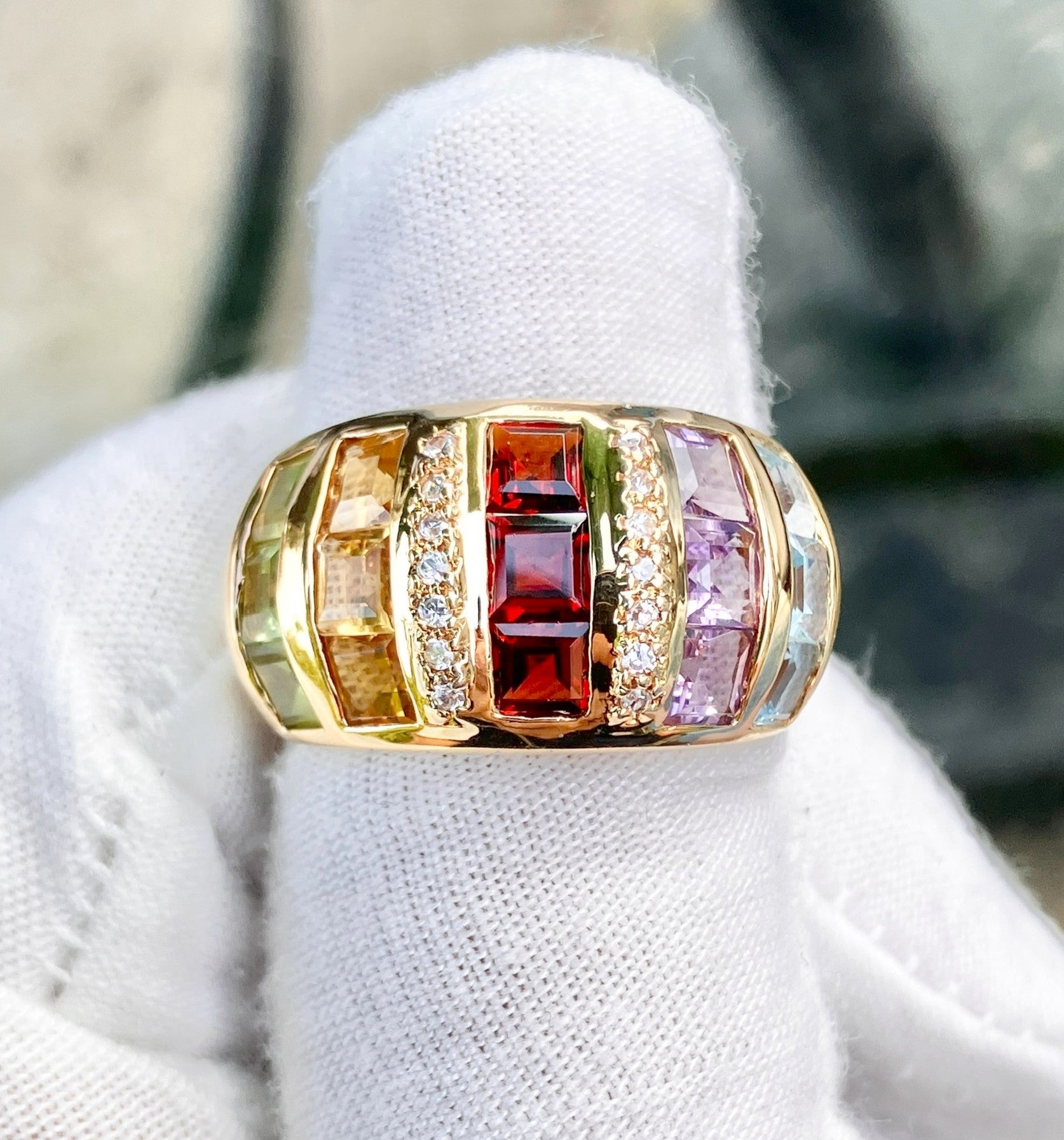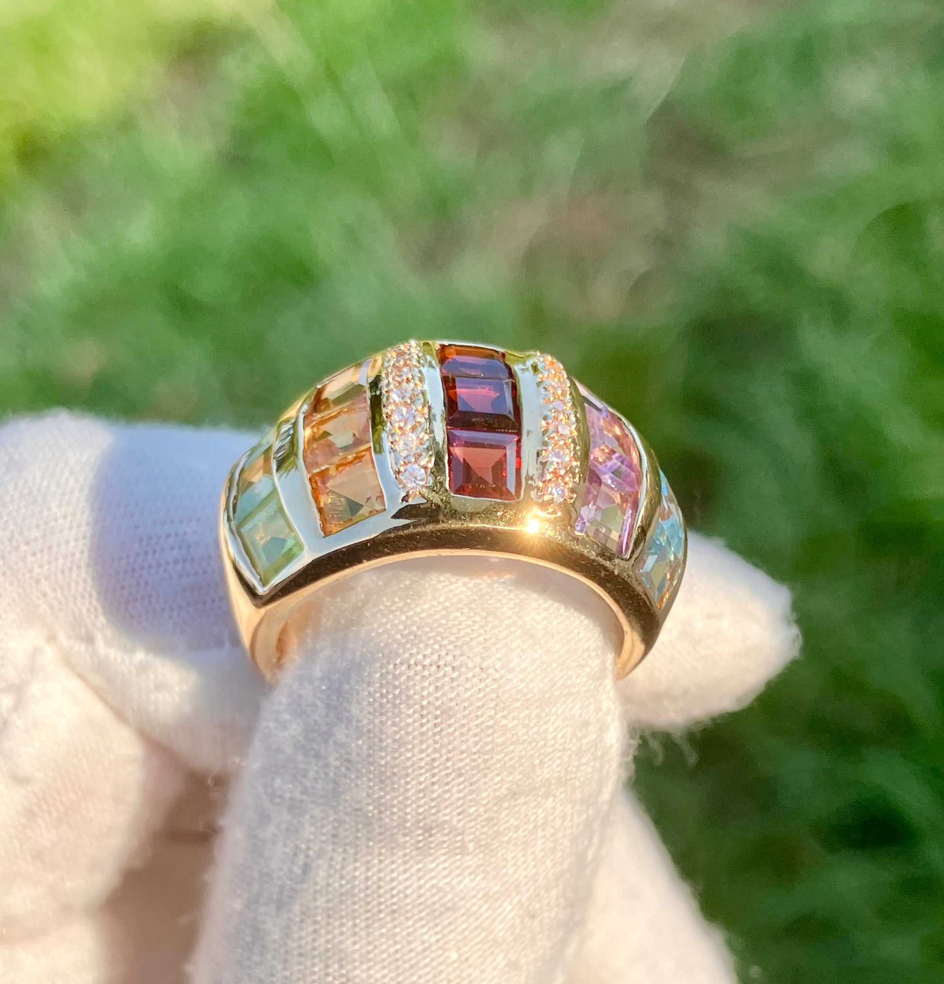 Gold Plated Square Step-cut Multi-Gemstone Ring with “Diamond” Accents