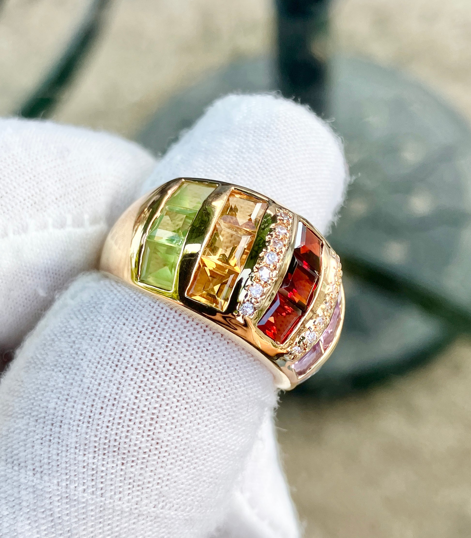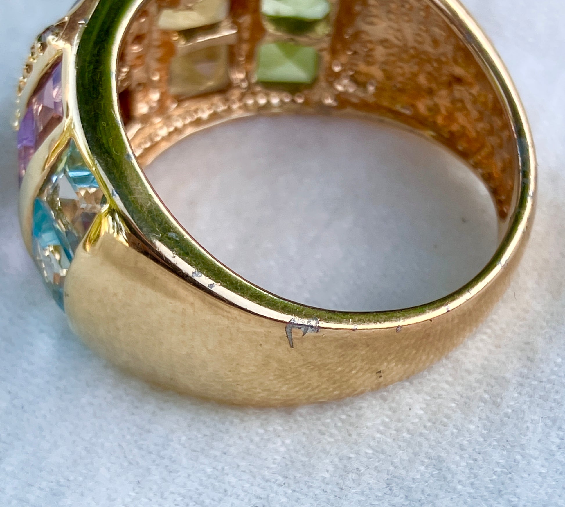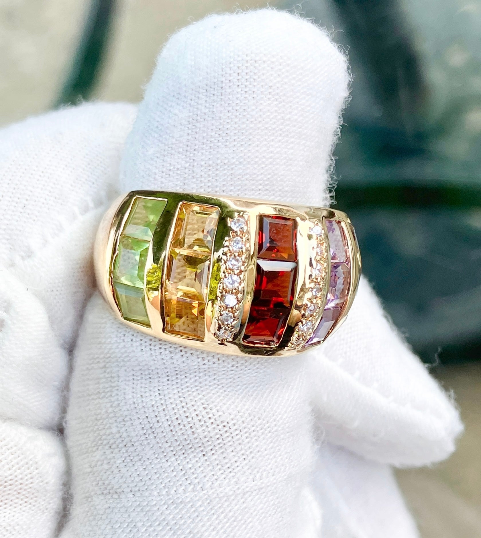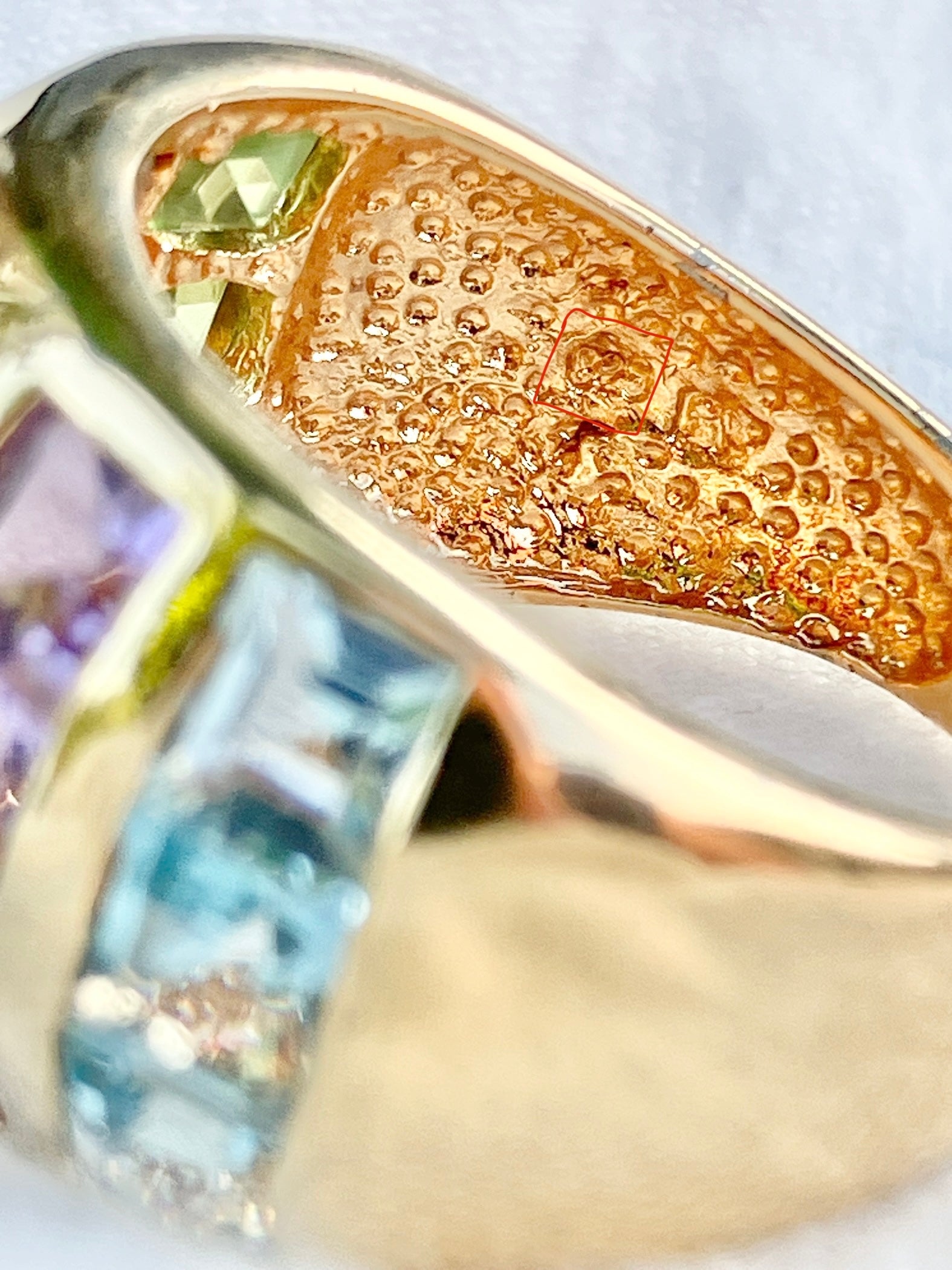 Gold Plated Square Step-cut Multi-Gemstone Ring with “Diamond” Accents
