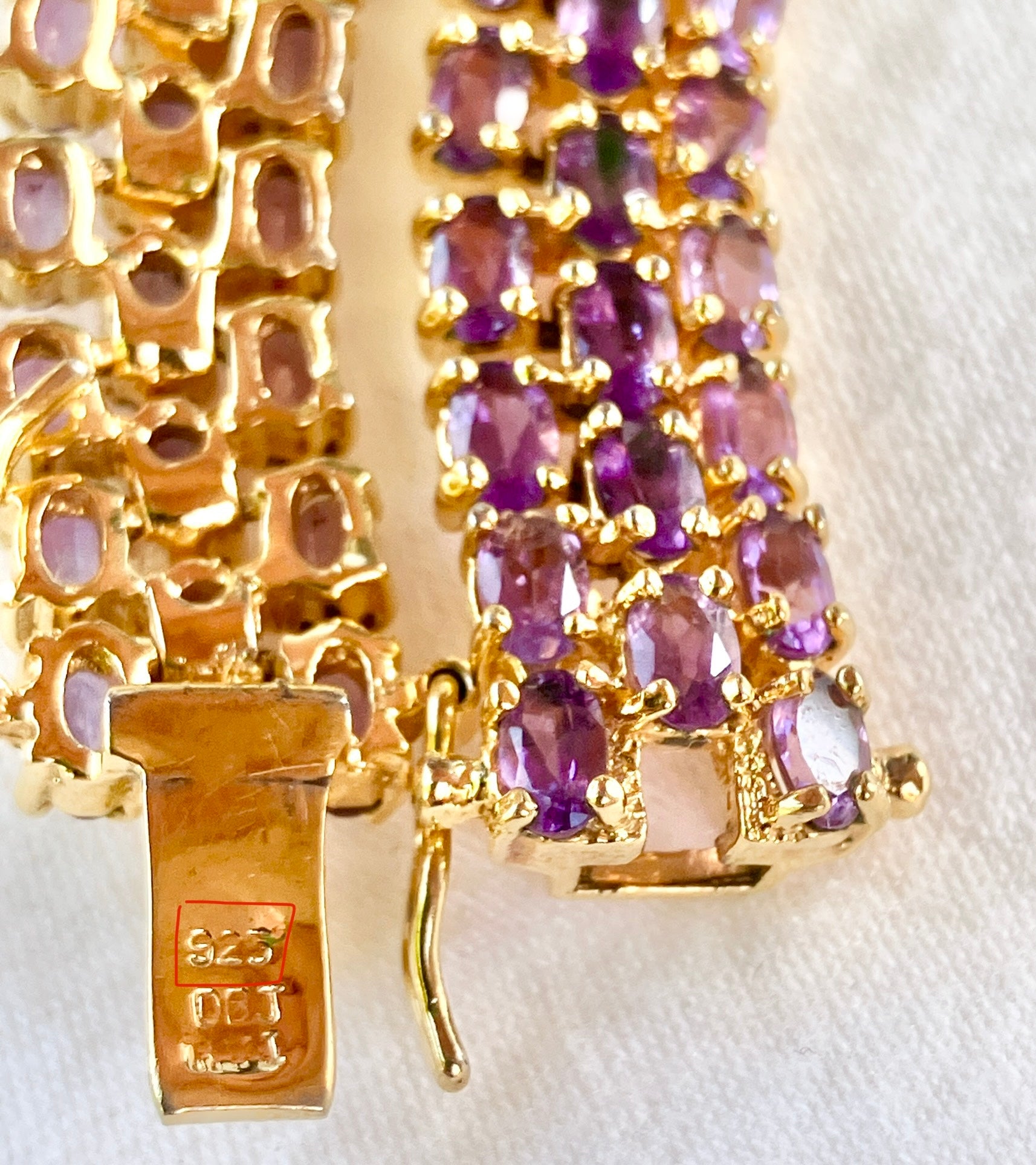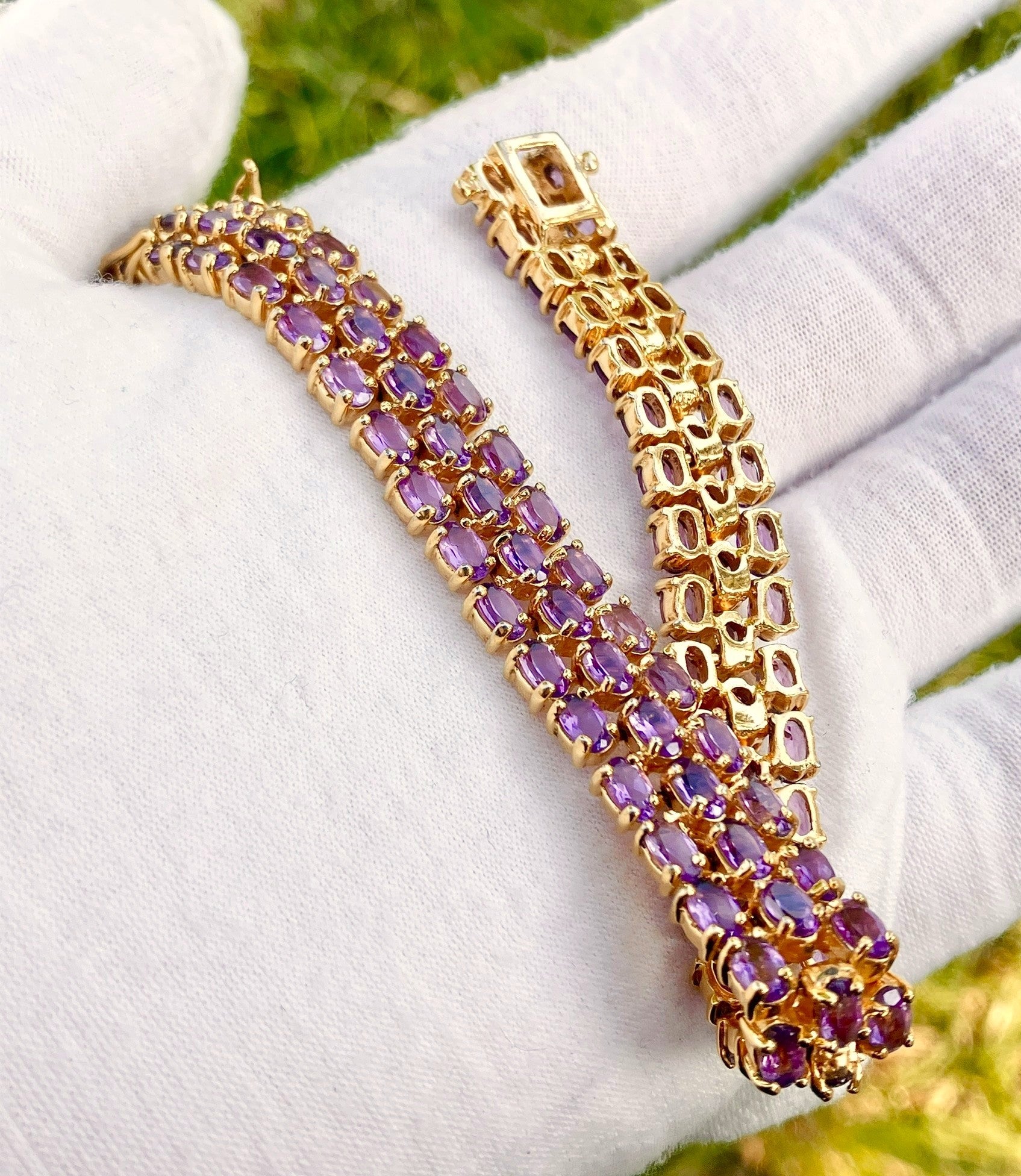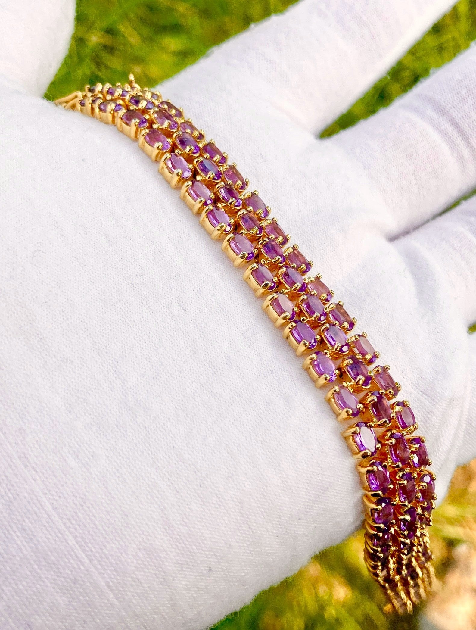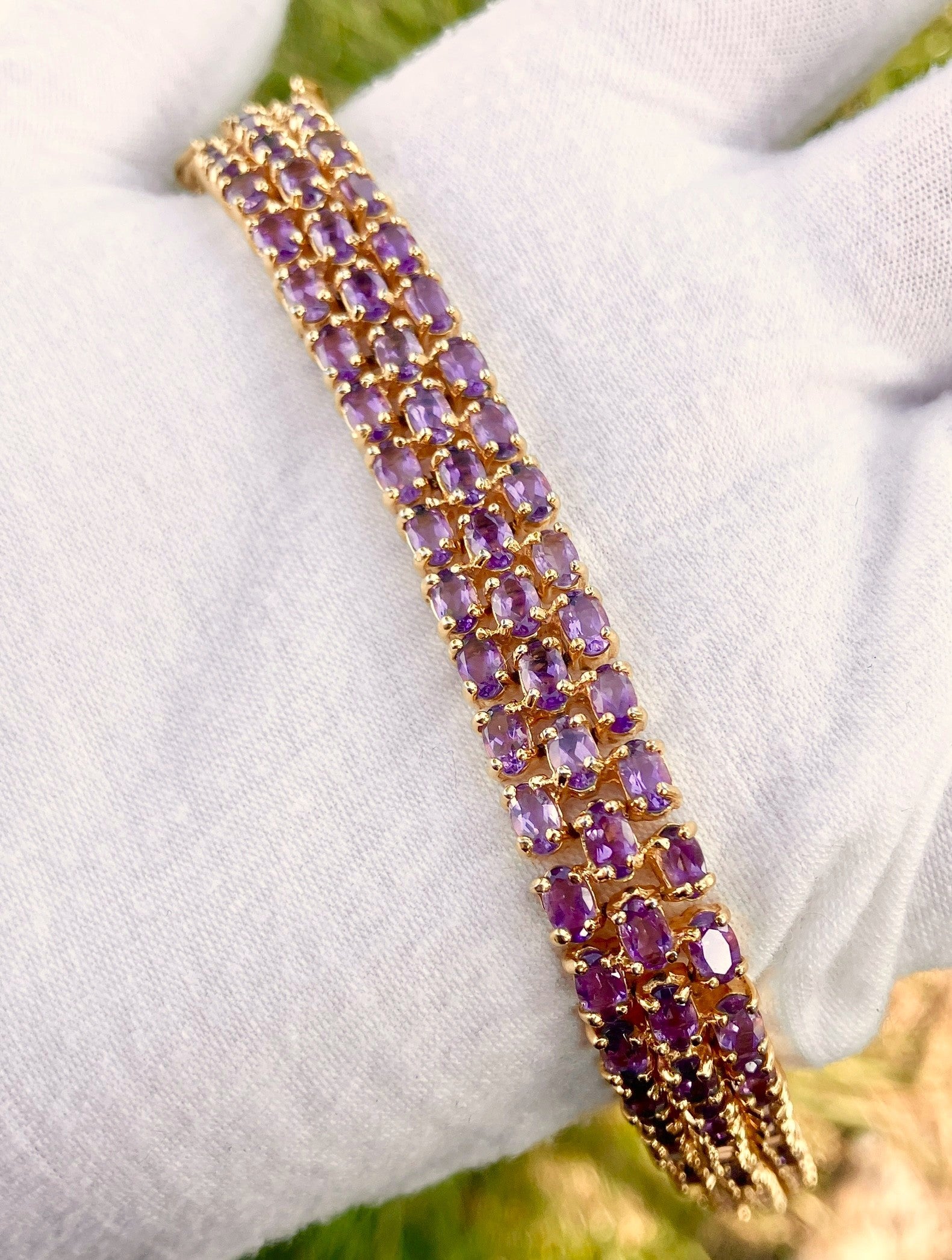 Gold Plated Tri-Row Amethyst Tennis Bracelet