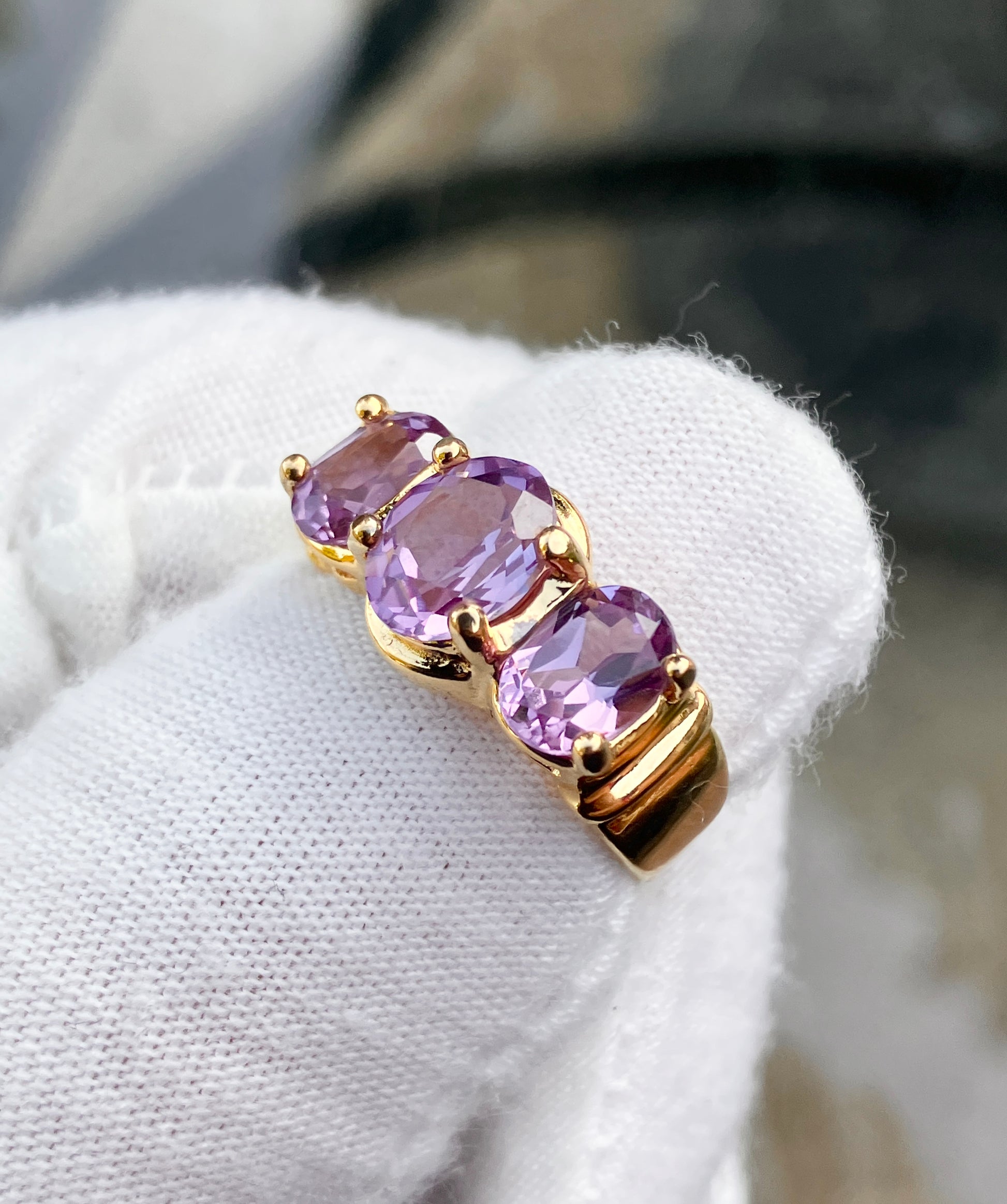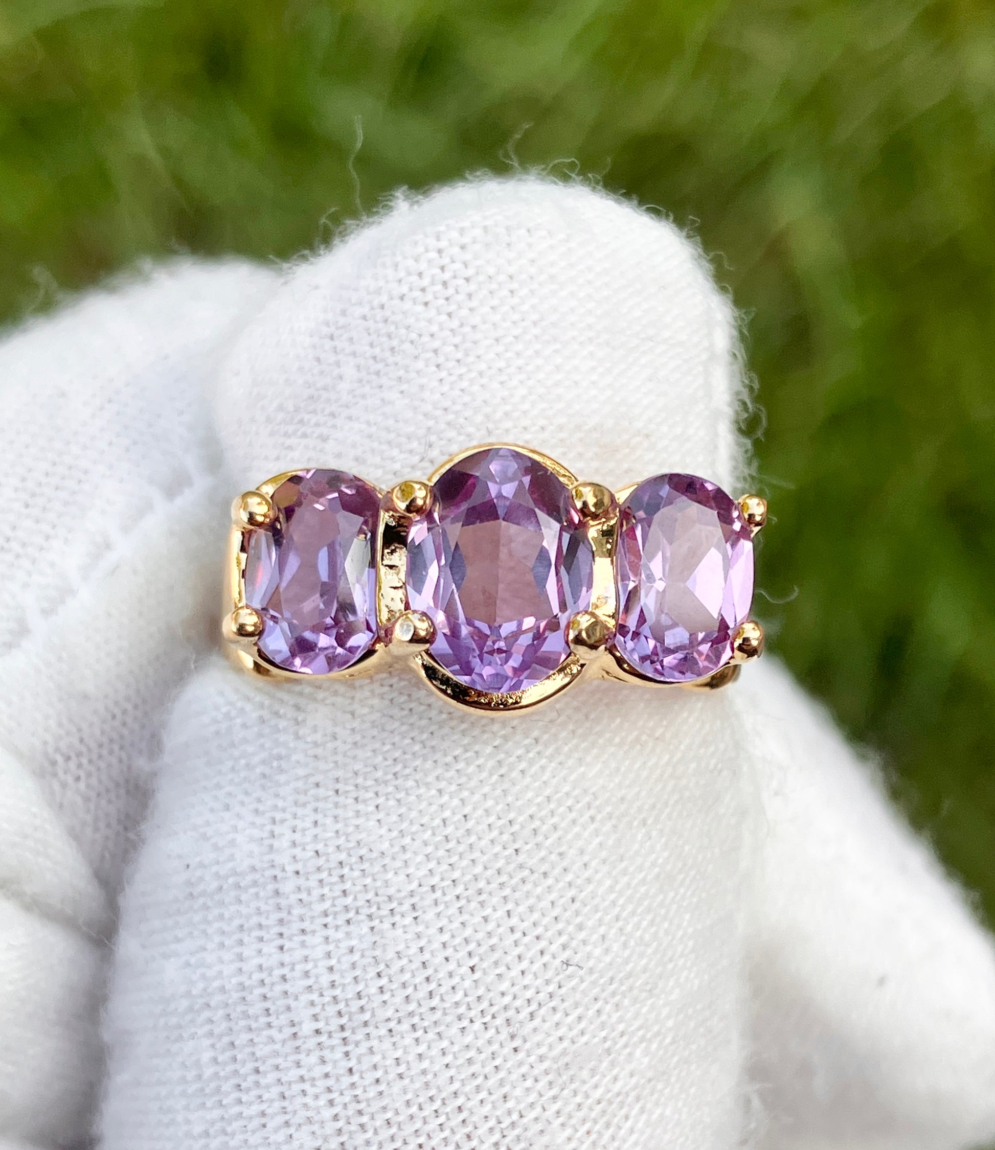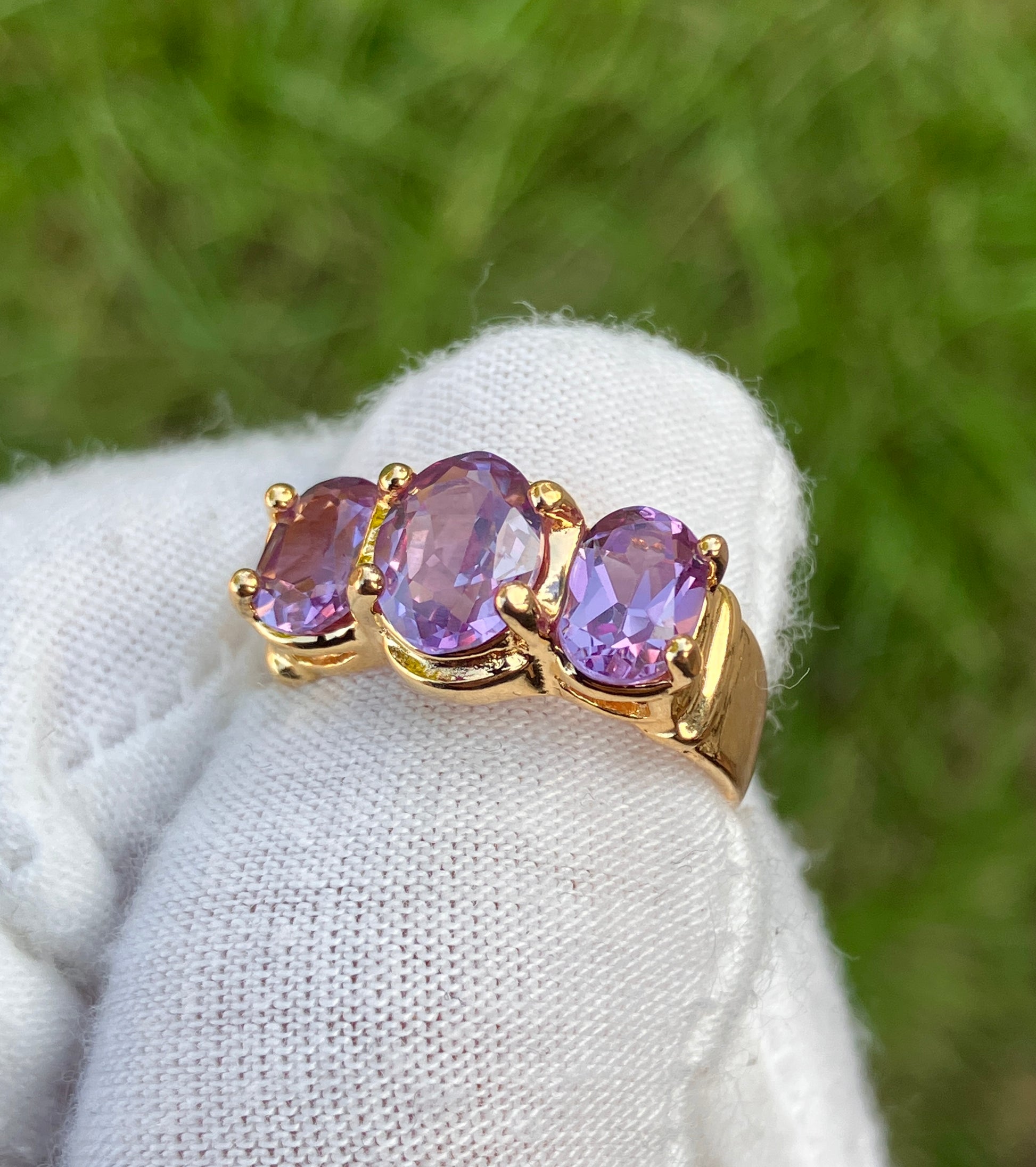 Gold Plated Tri-Stone Synthetic Color Change Sapphire Ring