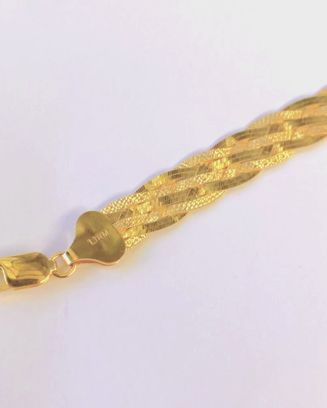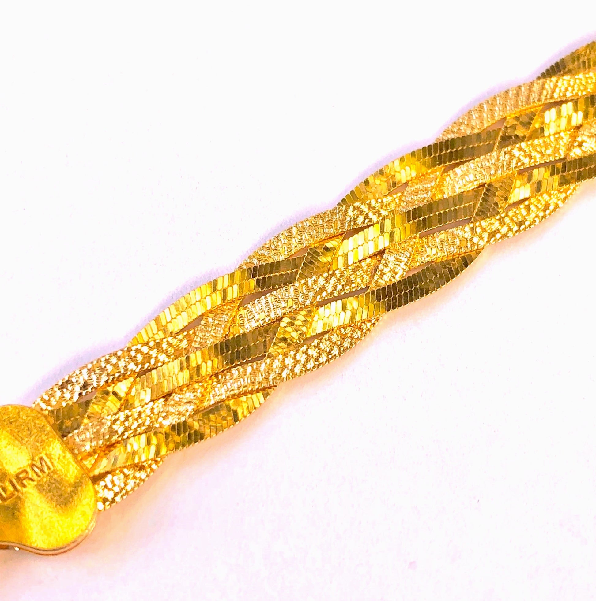 Gold Plated Dual-Texture Woven Herringbone Bracelet