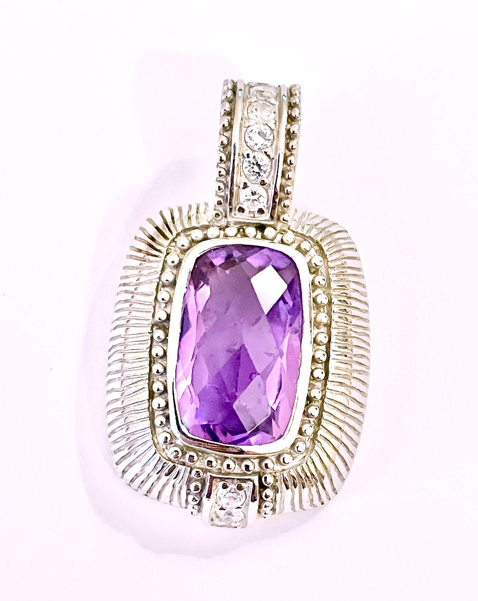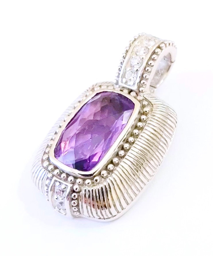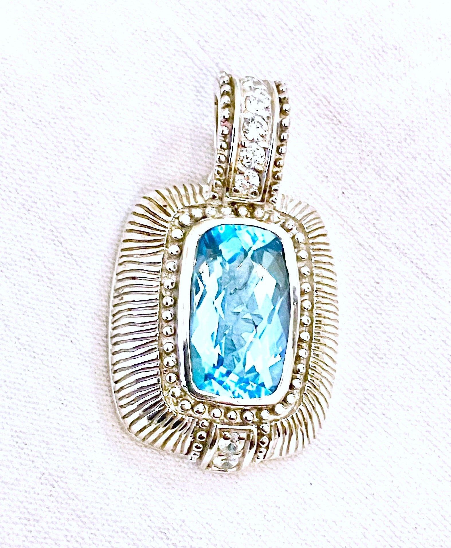 Judith Ripka Elongated Checkerboard Cushion Cut Gemstone and “Diamond” Pendant (3 Colors!)