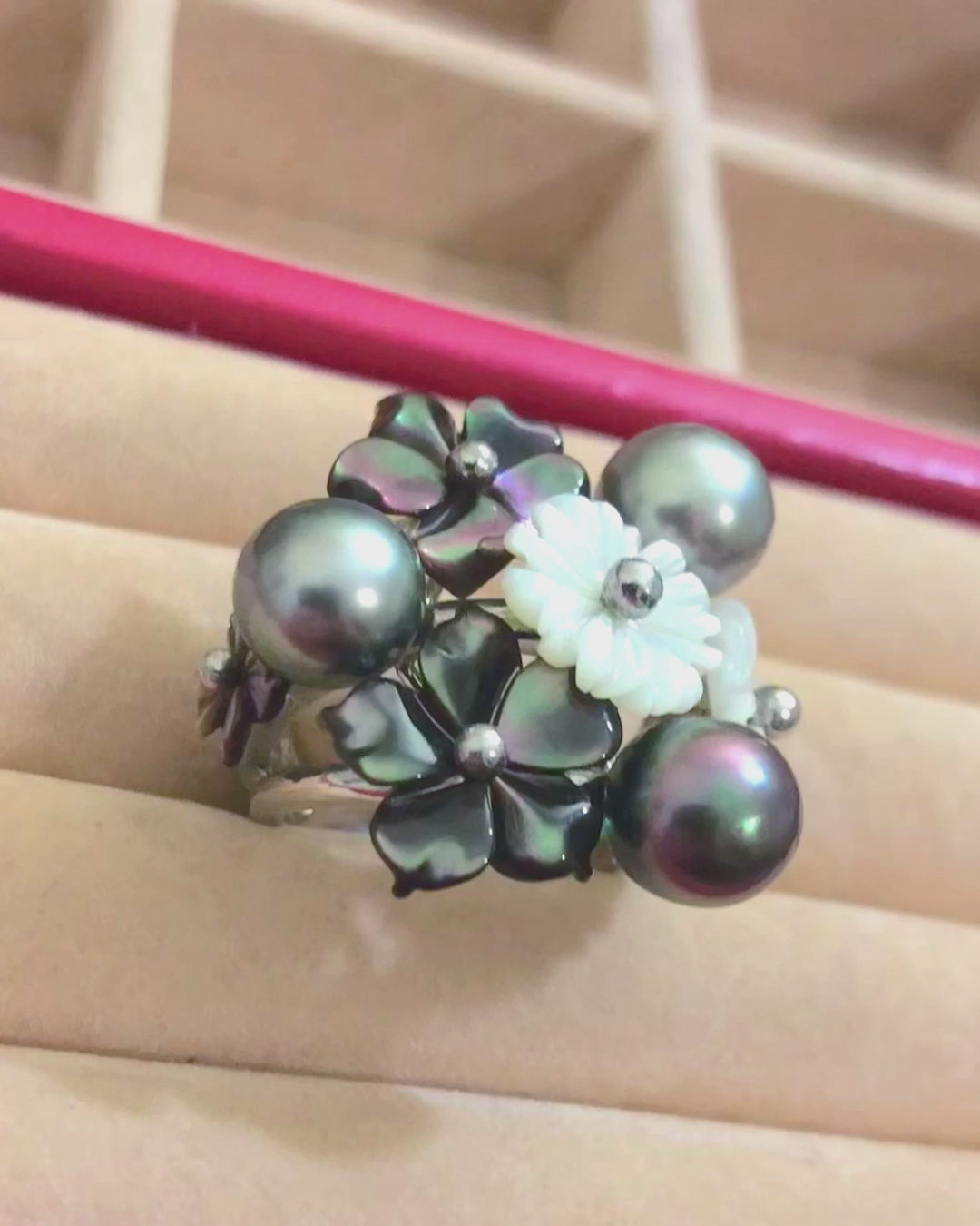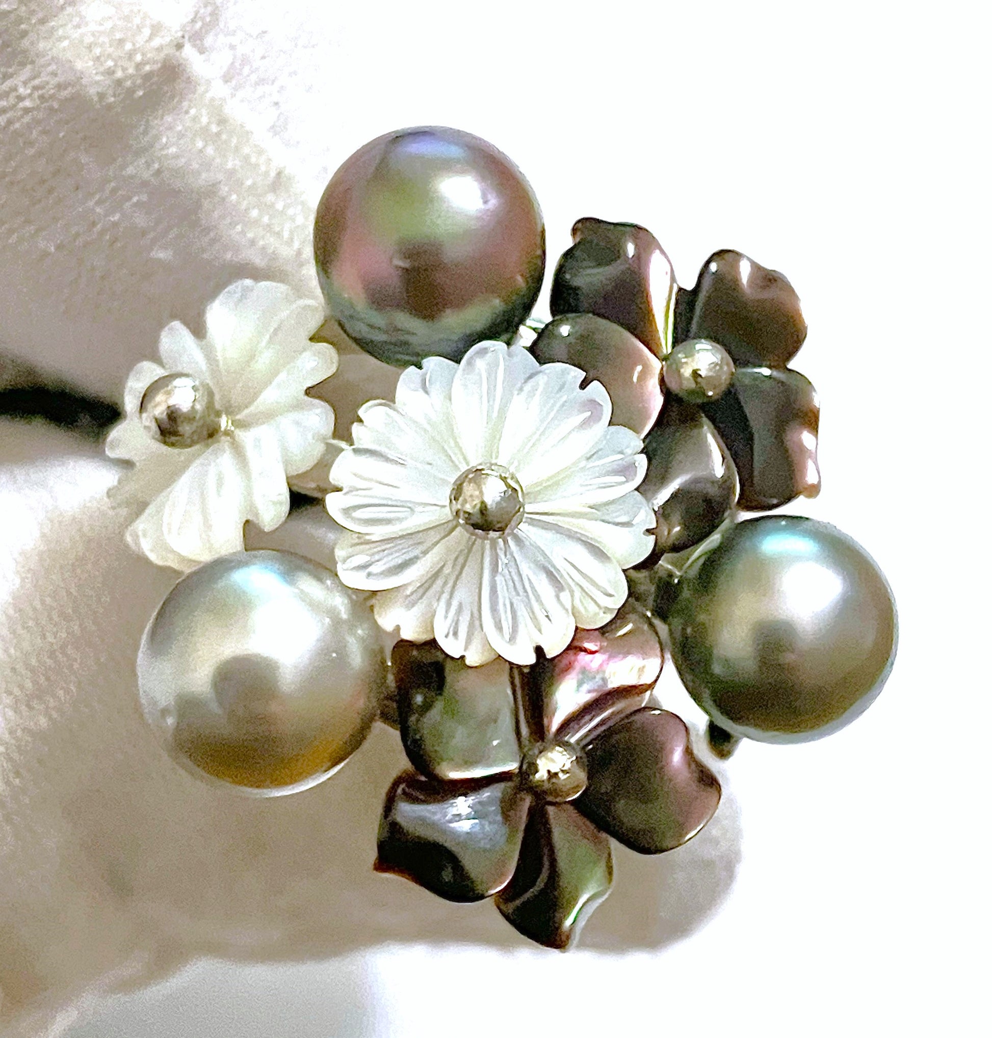Multi-Color Pearls with Mother of Pearl and Pearl Flowers Ring