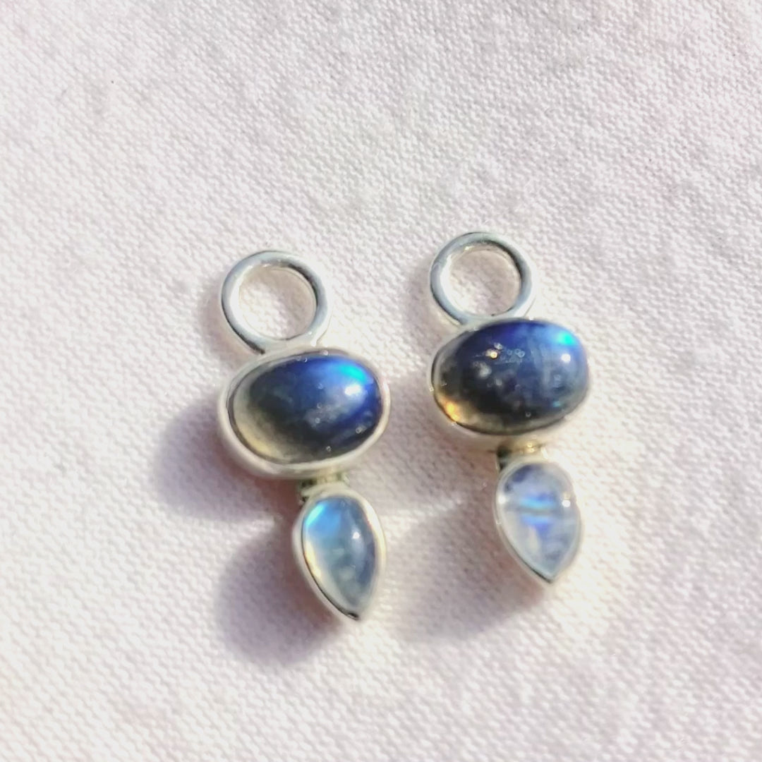 Oval Labradorite Cabochon and Pear Moonstone Cabochon Pendants