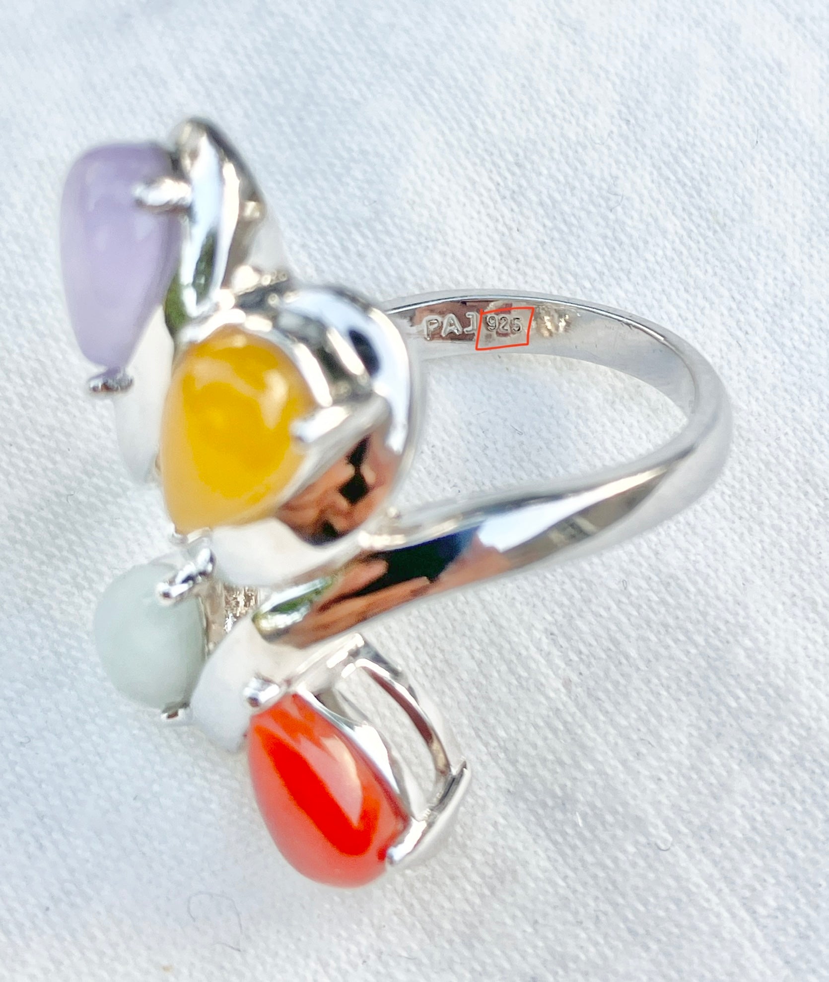 Pear Cut Cabochon Multi-Color Jade in Multi-Split Shank Ring