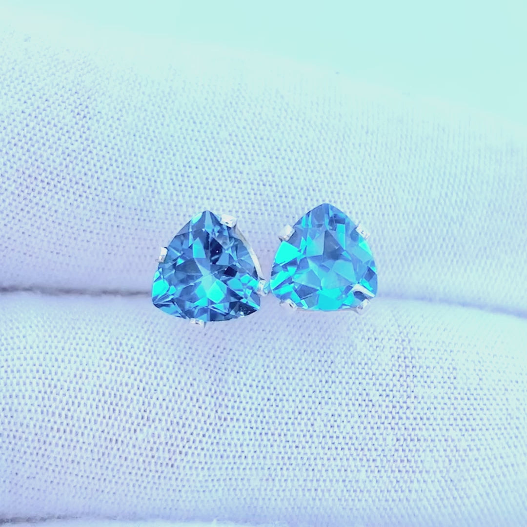 Triangular Brilliant Cut Swiss Blue Topaz Earrings